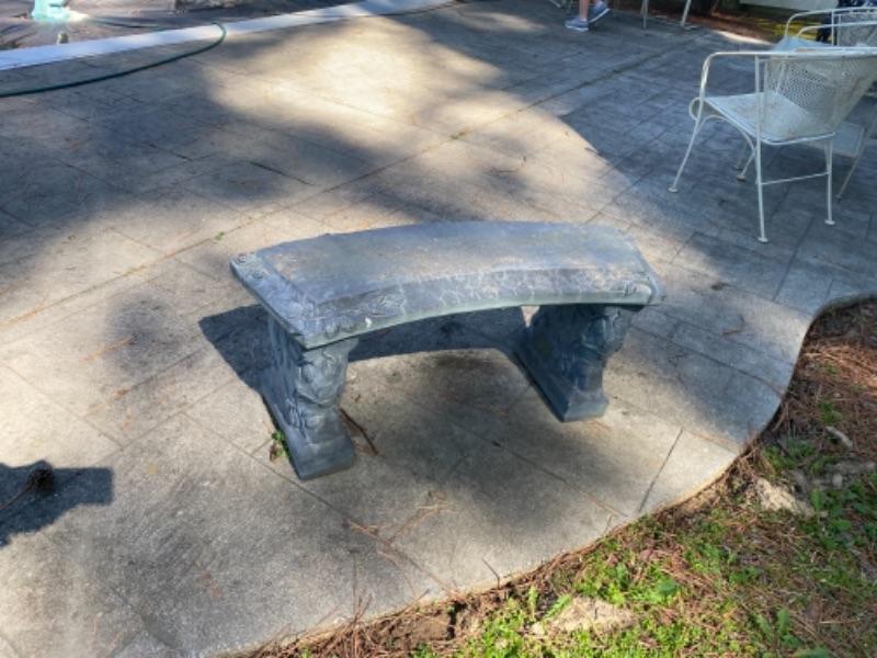 Cement curved 3pc bench 38” wide x 14” deep x 17” tall