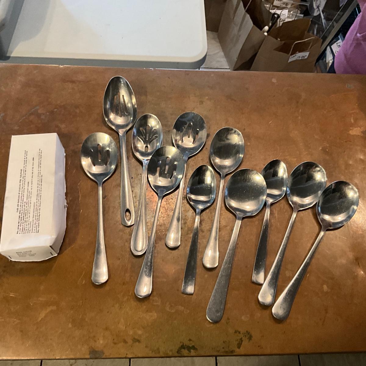 2 doz new teaspoons, and 5 slotted spoons and 6 tablespoons