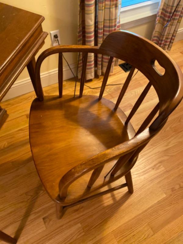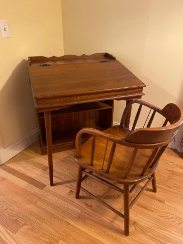 Vintage Pine Slant Front Desk with Bookshelf and Captains Chair by High Point Bending & Chair Co.