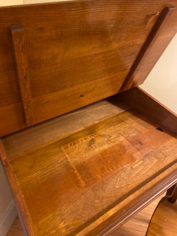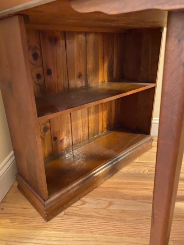 412: Vintage Pine Slant Front Desk with Bookshelf and Chair