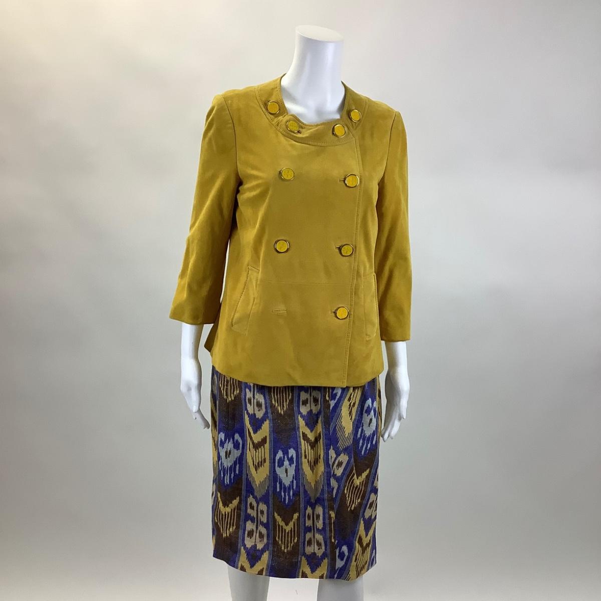 413 TORY BURCH 2pc. Yellow Leather Top & Skirt Size 8