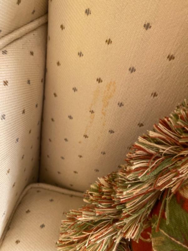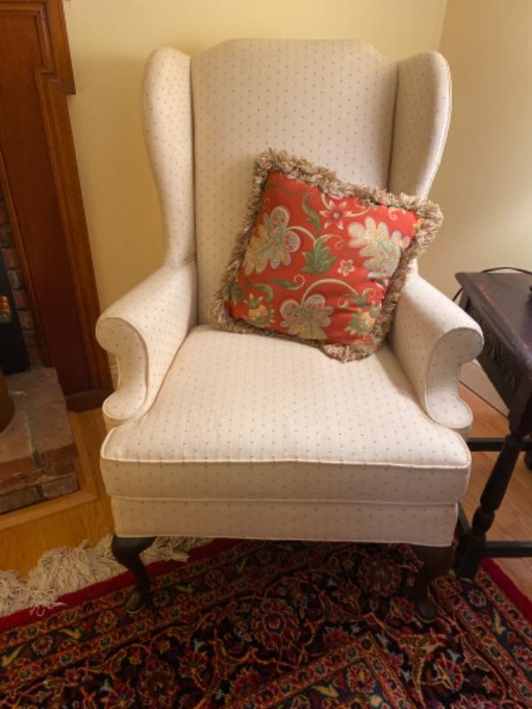 413 White Wingback Upholstered Chair 32” wide x 43” high x 21” seat depth x 28” deep and chair height 19”