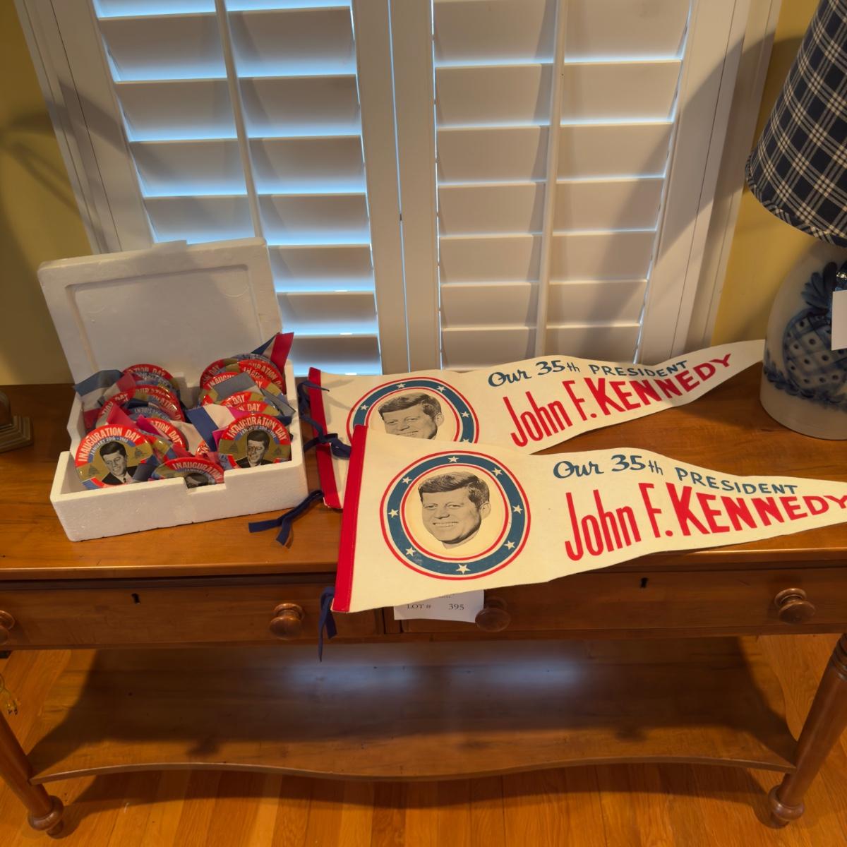 414 Lot of Vintage John F. Kennedy Presidential Pennants and Pin Badges