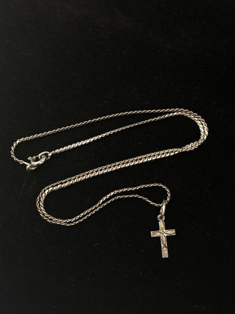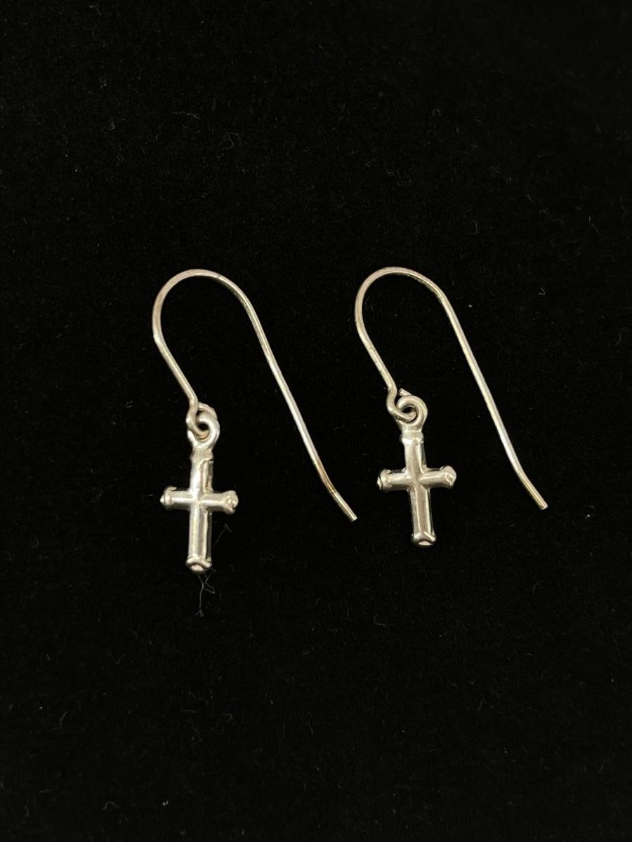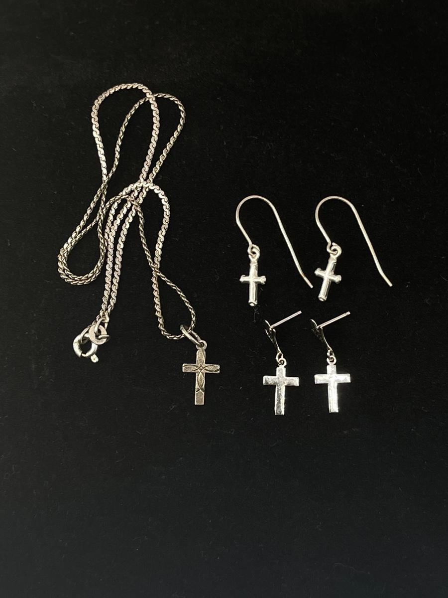 Sterling Assortment includes 15” chain with a 14mm cross pendant with fish inscribed, pair of 13mm cross earrings with a 7/8” dangle and a pair of 12mm cross earrings with a 6/8” dangle (no backs). 4 total grams.