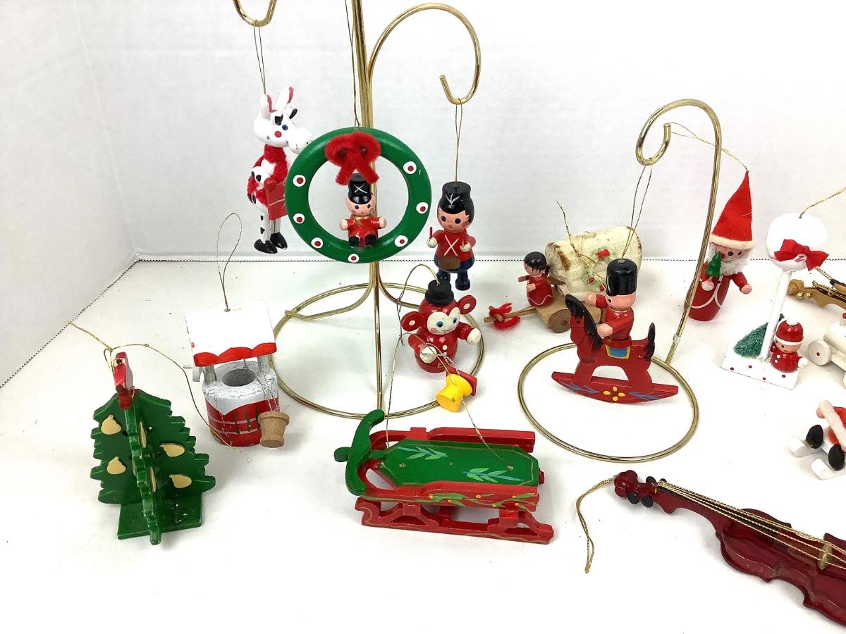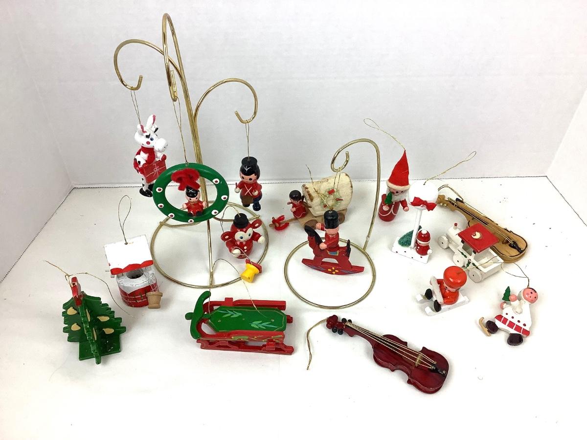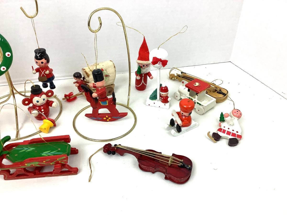 There are 16 wooden ornaments in the lot and they range in size from 2"-6".