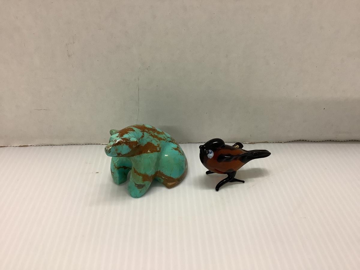 418 Turquoise Stone Bear & Hand-blown Glass Bird from Russia