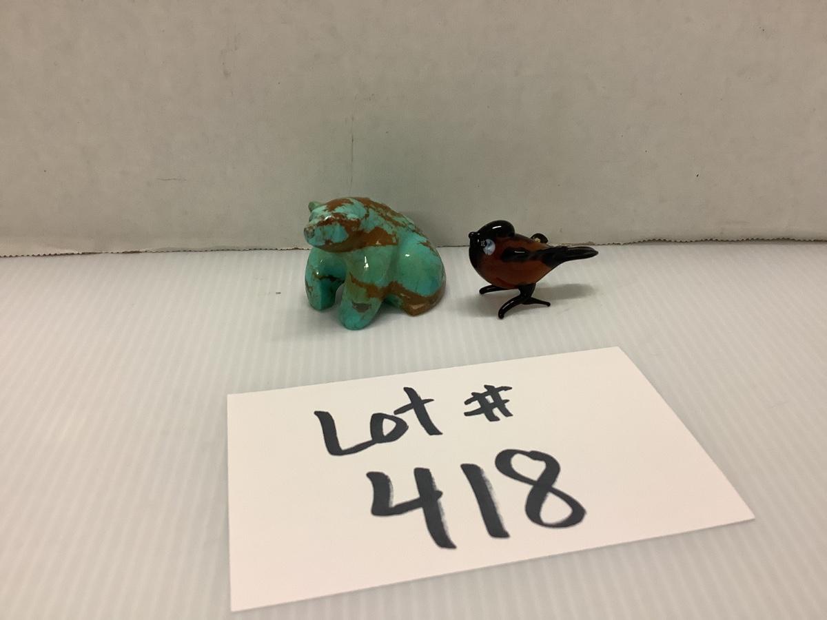 418  Turquoise Stone Bear & Hand-blown Glass Bird from Russia