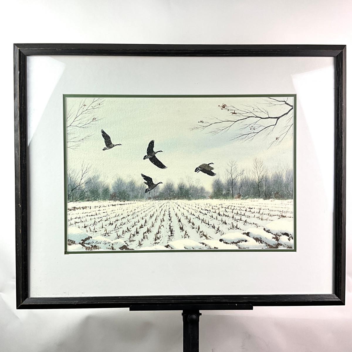 419 Circa 1973 Original Watercolor Flying Geese Scene By William Redd Taylor (1938-2018)