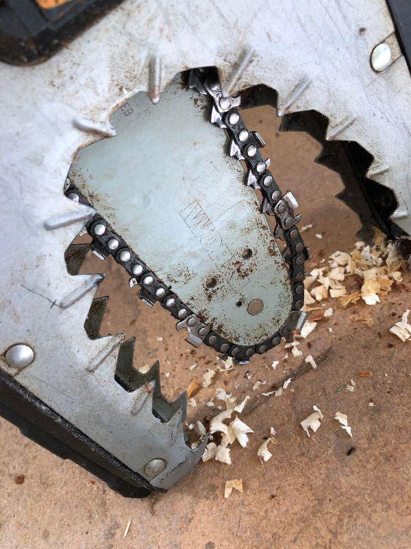 Cool mini, chain saw for small trees, chain is loose but powers up