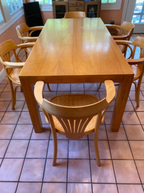 419: Large Parsons Table with 6 Bentwood Chairs Set