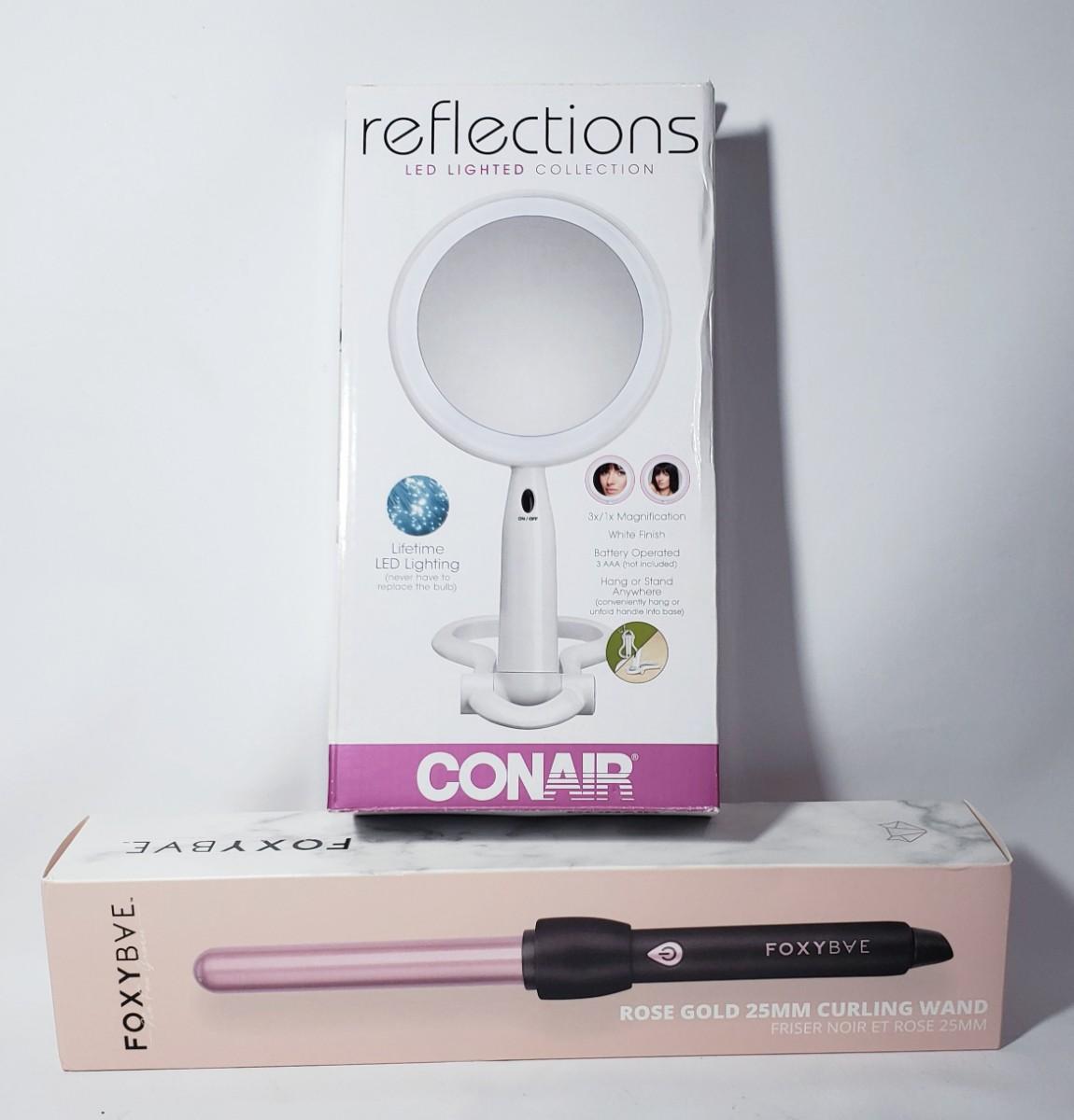 NIB curling wand and a Conair LED lighted magnifying mirror.