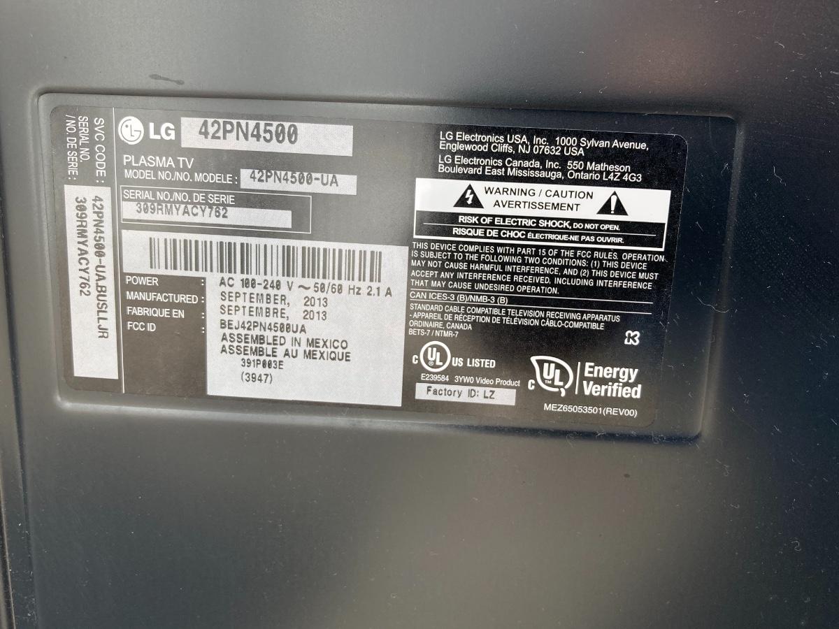 42” Class Plasma HD TV (41.6” diagonally)