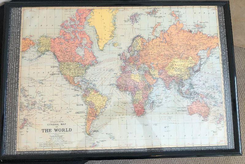 #42 Framed Map of the WORLD - Vintage