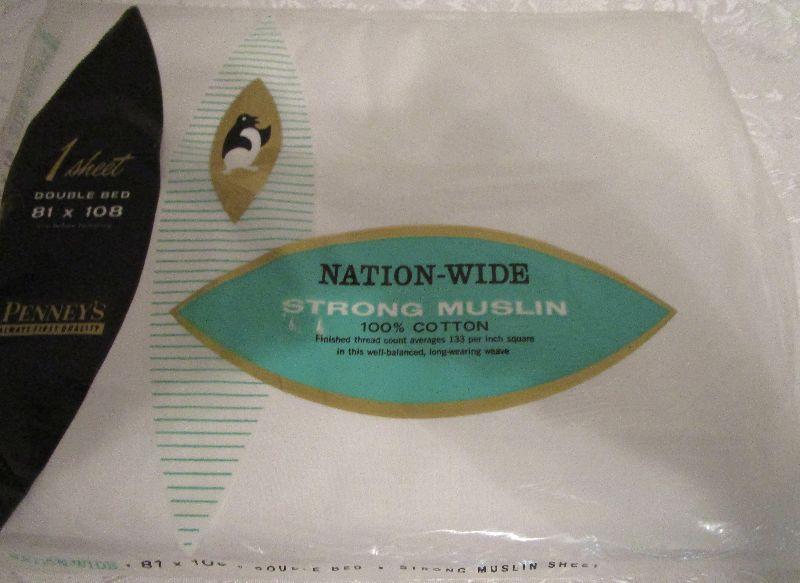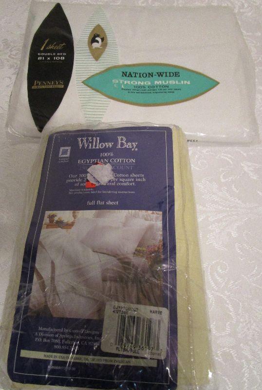 Willow Bay by Springs 100% Egytian Cotton, 250 thead count, 81"x96"finished, tan; Penney's Strong Muslin 100% Cotton sheet 81"X108"; white