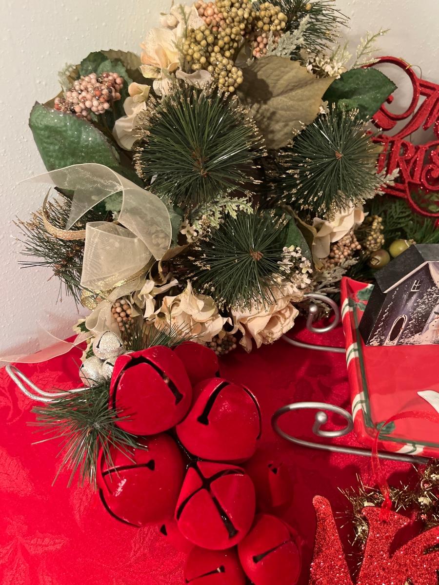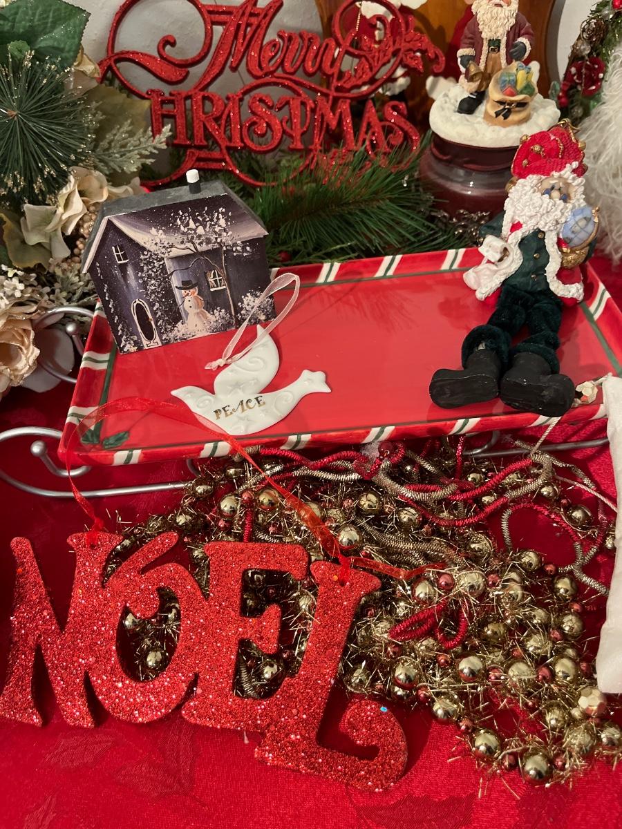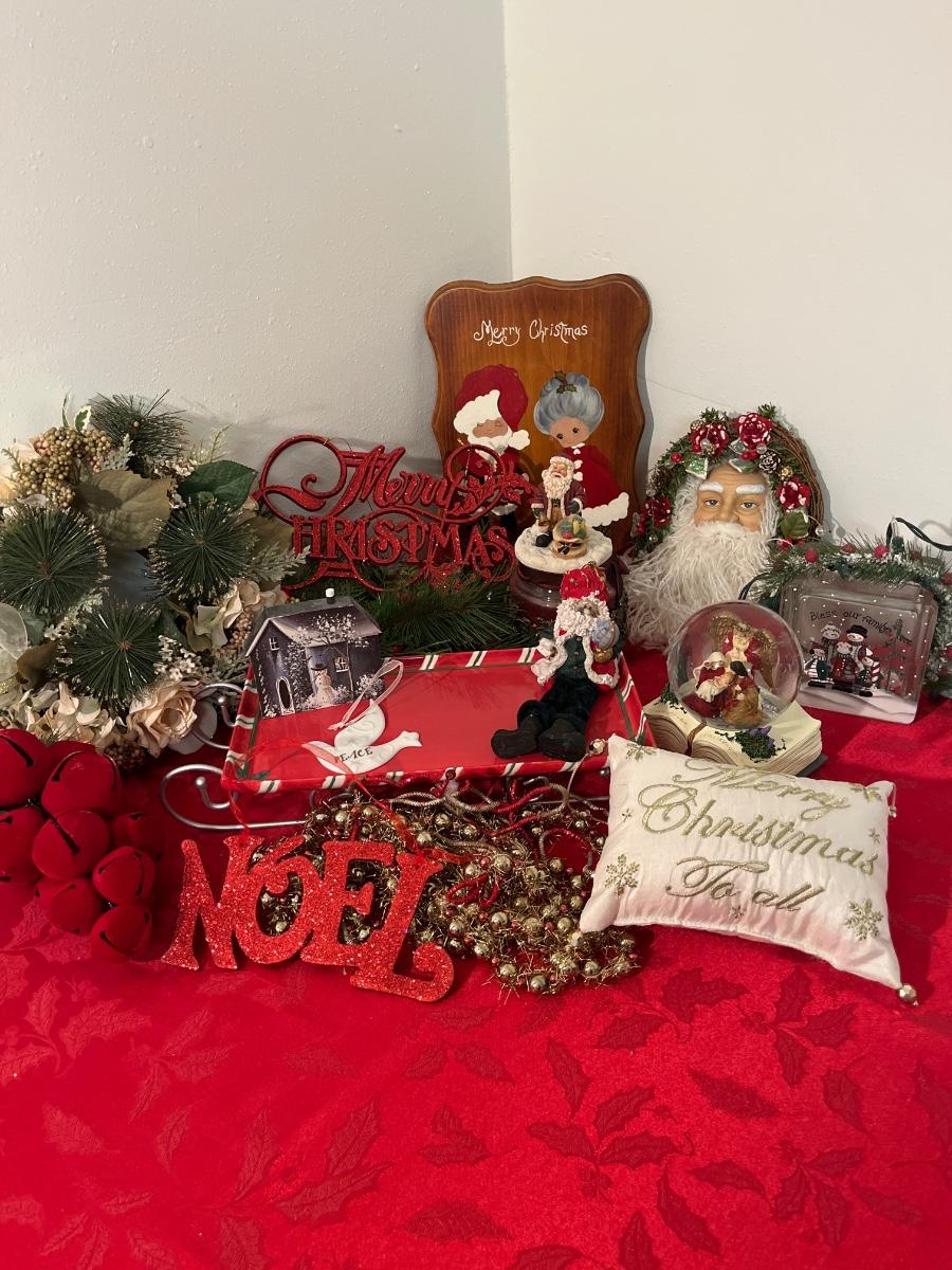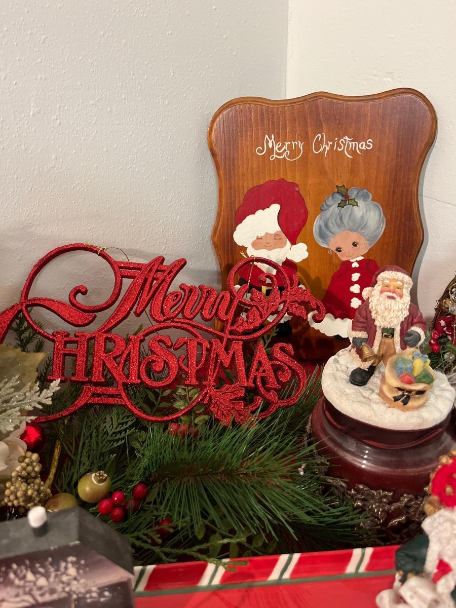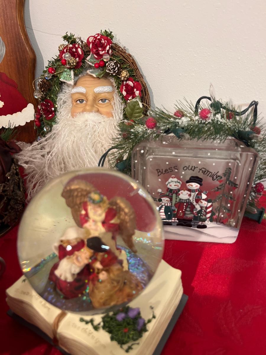 42- Fun holiday decor (tray, snow globe, Santa decor)