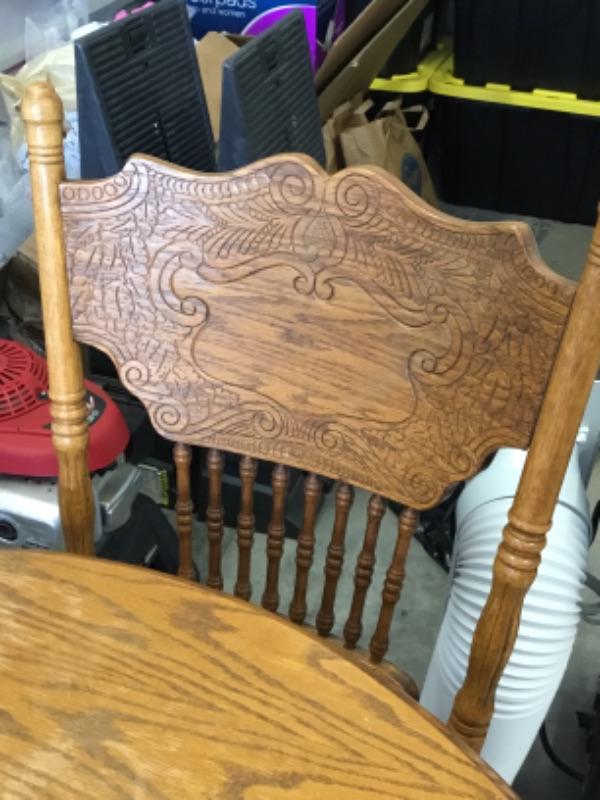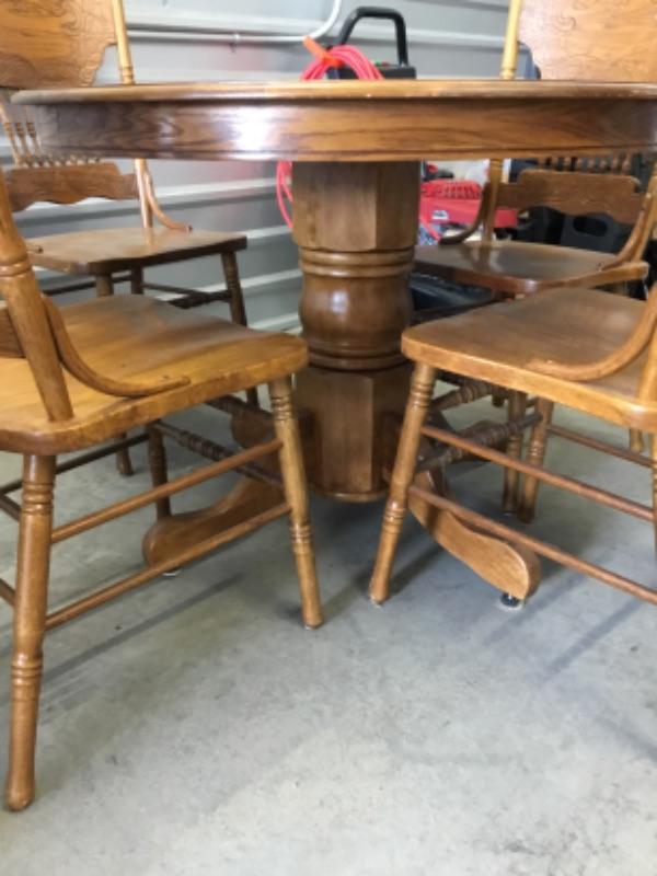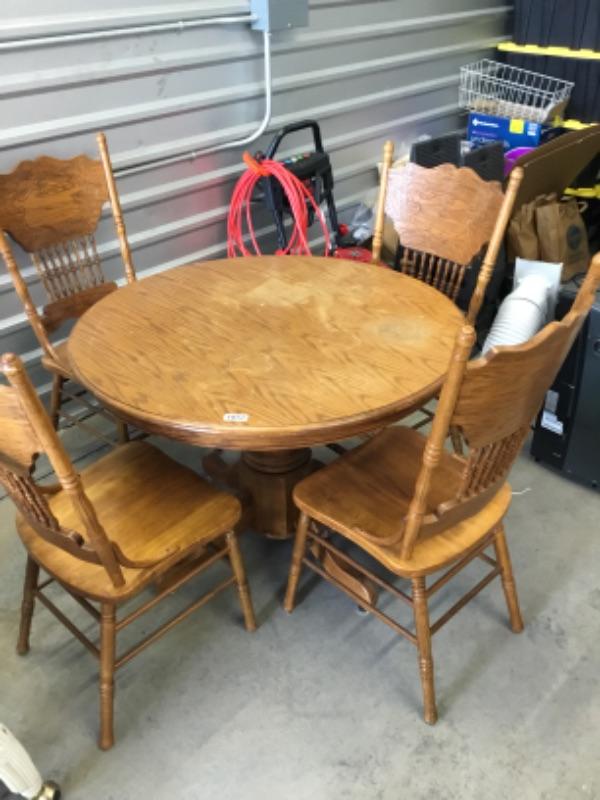 42 inch oak pedestal table with four chairs Lot 1057