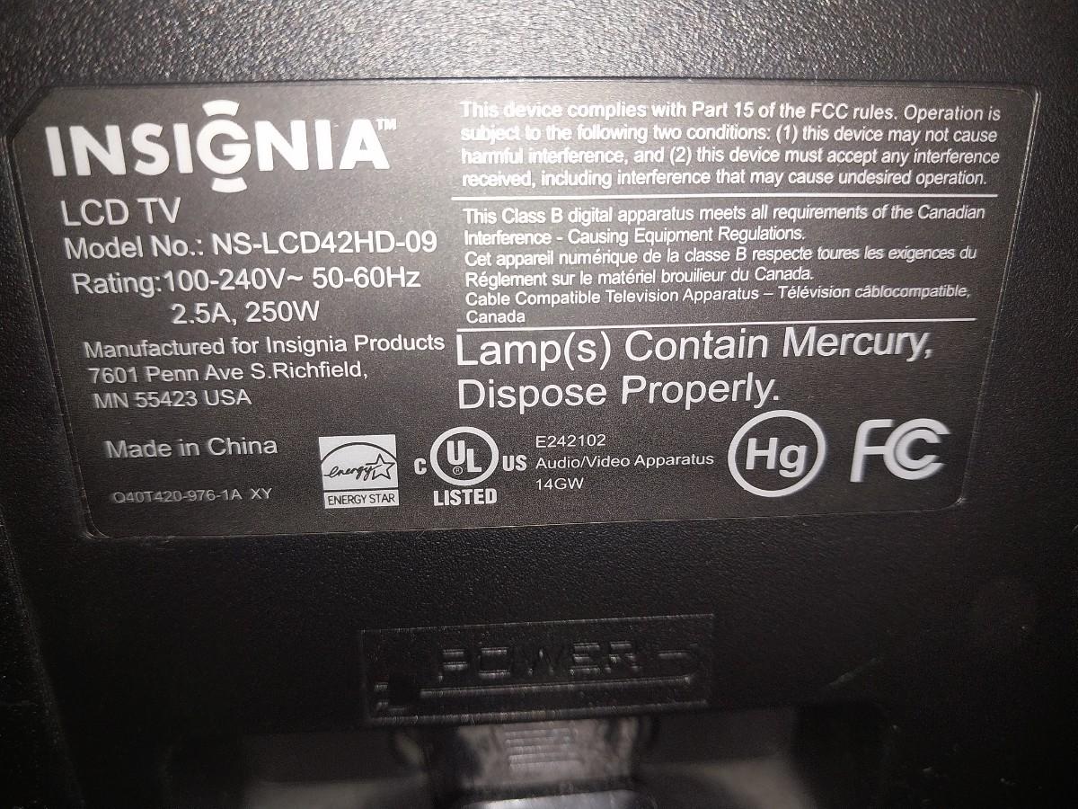 42" INSIGNIA LCD TV WITH REMOTE AND STAND