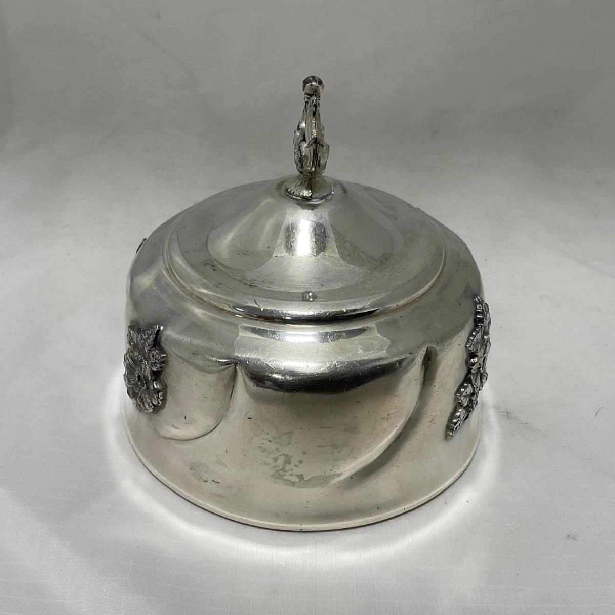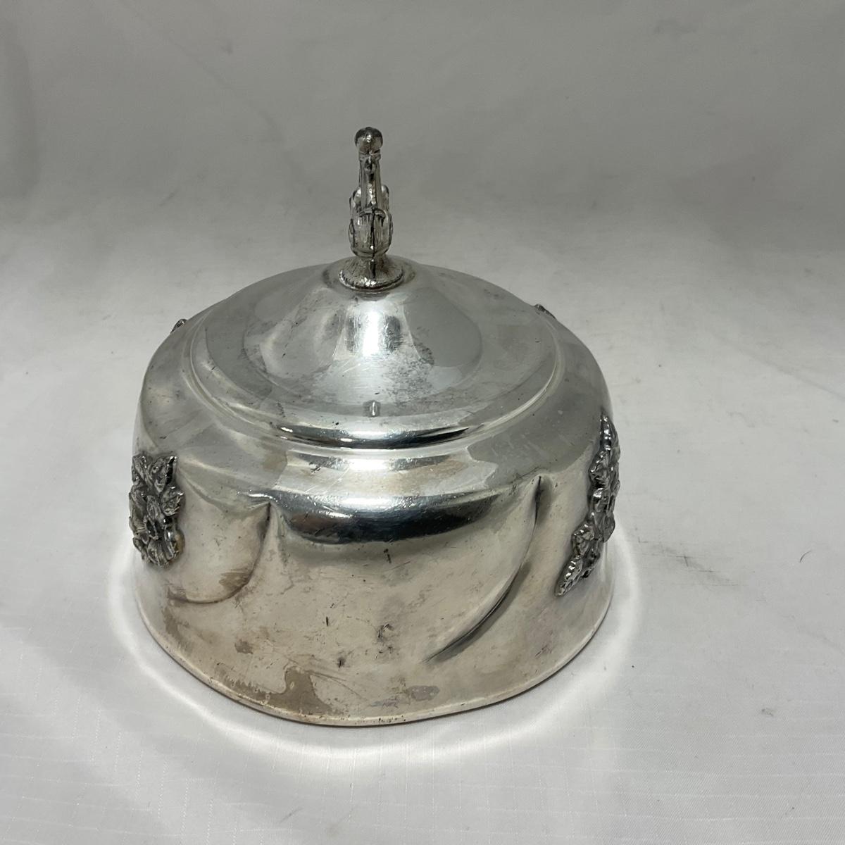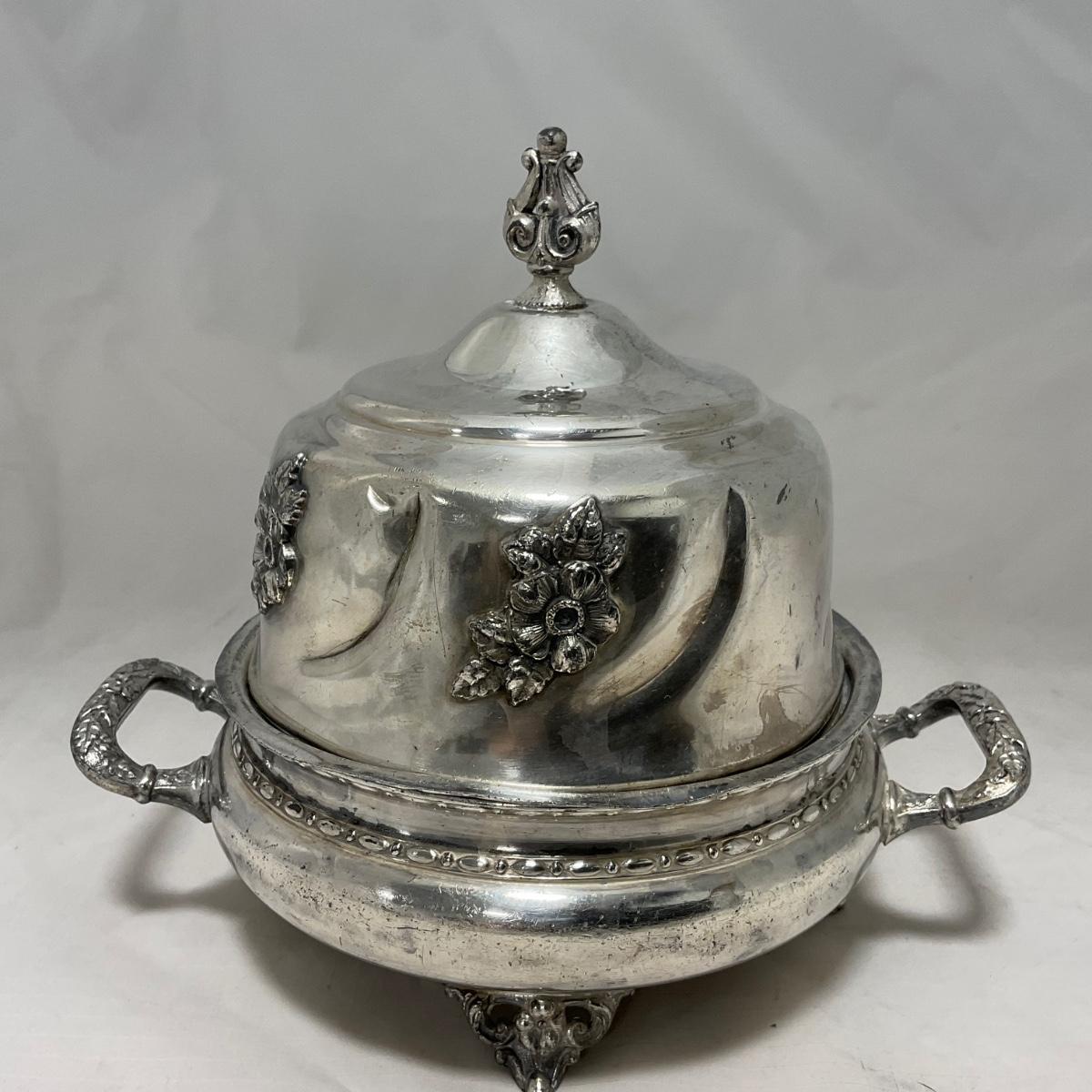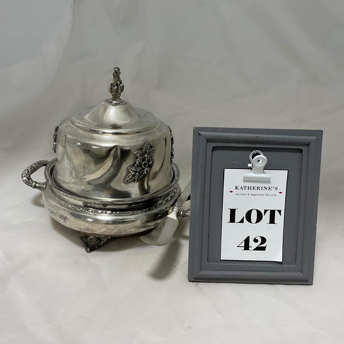 4 pieces total covered metal butter dish insert and serving knife. The perfect addition to any table setting. This piece is marked on the bottom. Please see photos for details and condition. ::: Shipping is available on this lot. If you require shipping you must let us know at the close of the auction. We will coordinate with you after the item has been won. Shipping fees will include insurance up to or exceeding the value of all items being mailed. If you have any questions regarding this lot please contact the auctioneer either via this website, by direct email or by phone. PICK UP TIMES and other important information can be found in the TERMS and DESCRIPTION of the auction. Please take a look for pertinent information. Thanks!