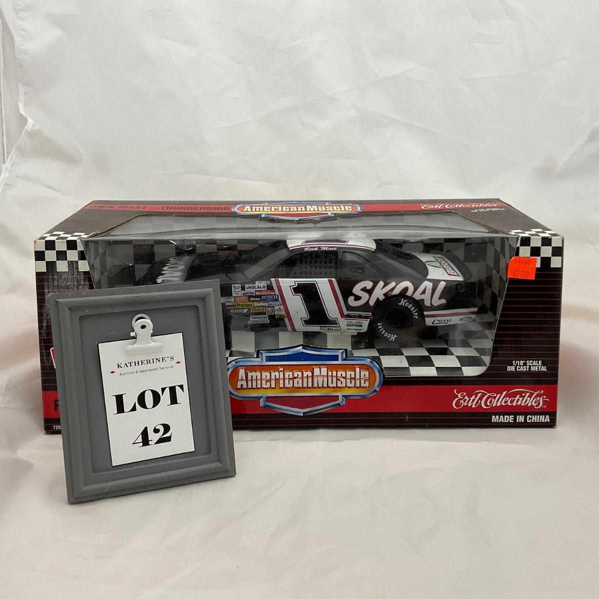 One NASCAR die cast 1:18 scale Skoal Thunderbird Prix in box. Driver Rick Mast. Please see photos for details and condition. ::: Shipping is available on this lot. If you require shipping you must let us know at the close of the auction. We will coordinate with you after the item has been won. Shipping fees will include insurance up to or exceeding the value of all items being mailed. If you have any questions regarding this lot please contact the auctioneer either via this website, by direct email or by phone. PICK UP TIMES and other important information can be found in the TERMS and DESCRIPTION of the auction. Please take a look for pertinent information. Thanks!