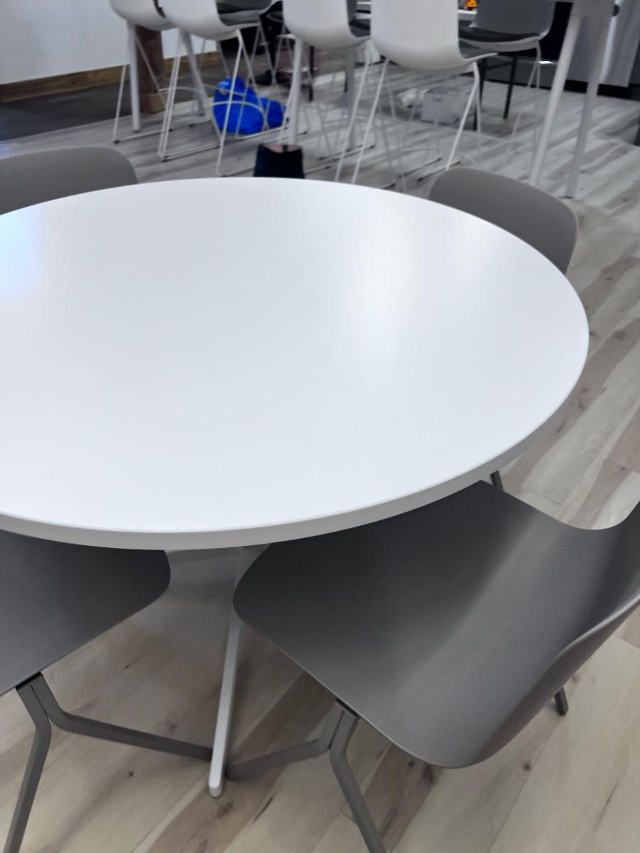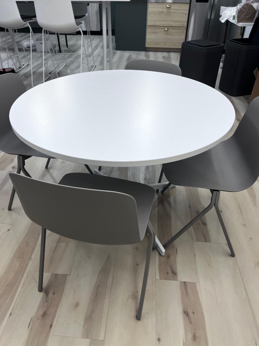 #42 POPPIN Touch Point Round Table with 4 Key Side Chairs.