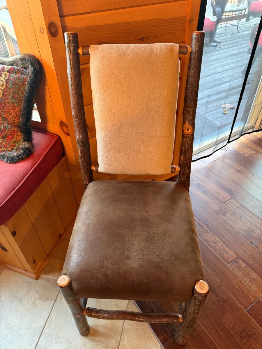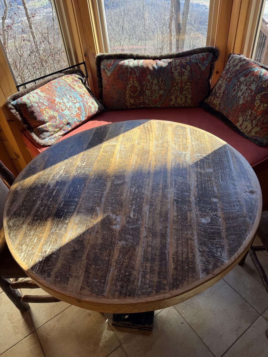 42" Round Rustic Farmhouse Table with Two Hickory Farm Chairs 30" Tall. Table by Casa Rustica