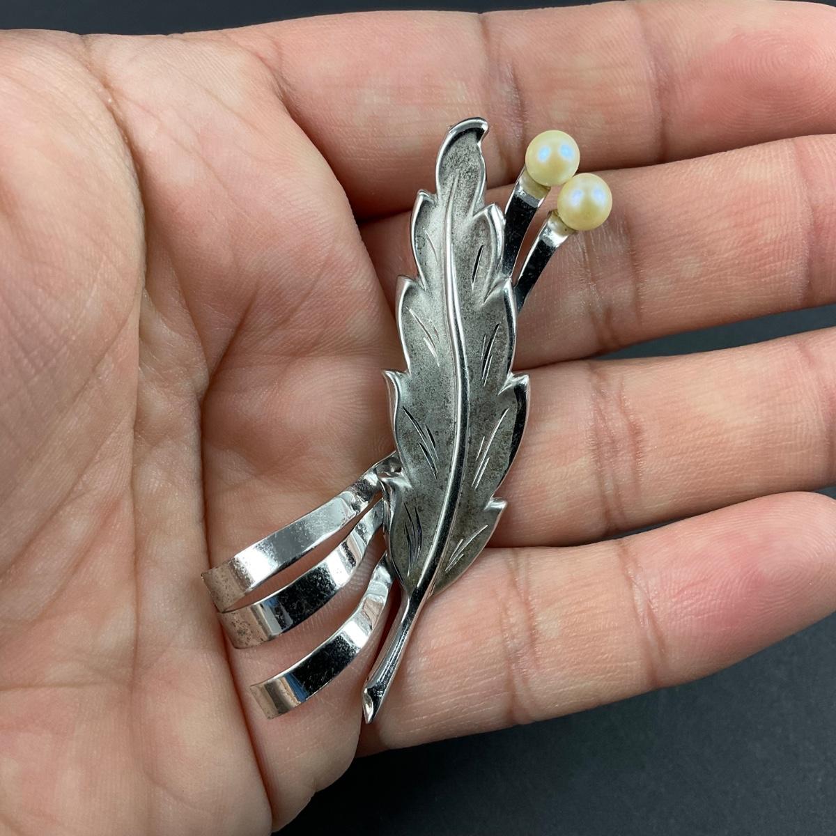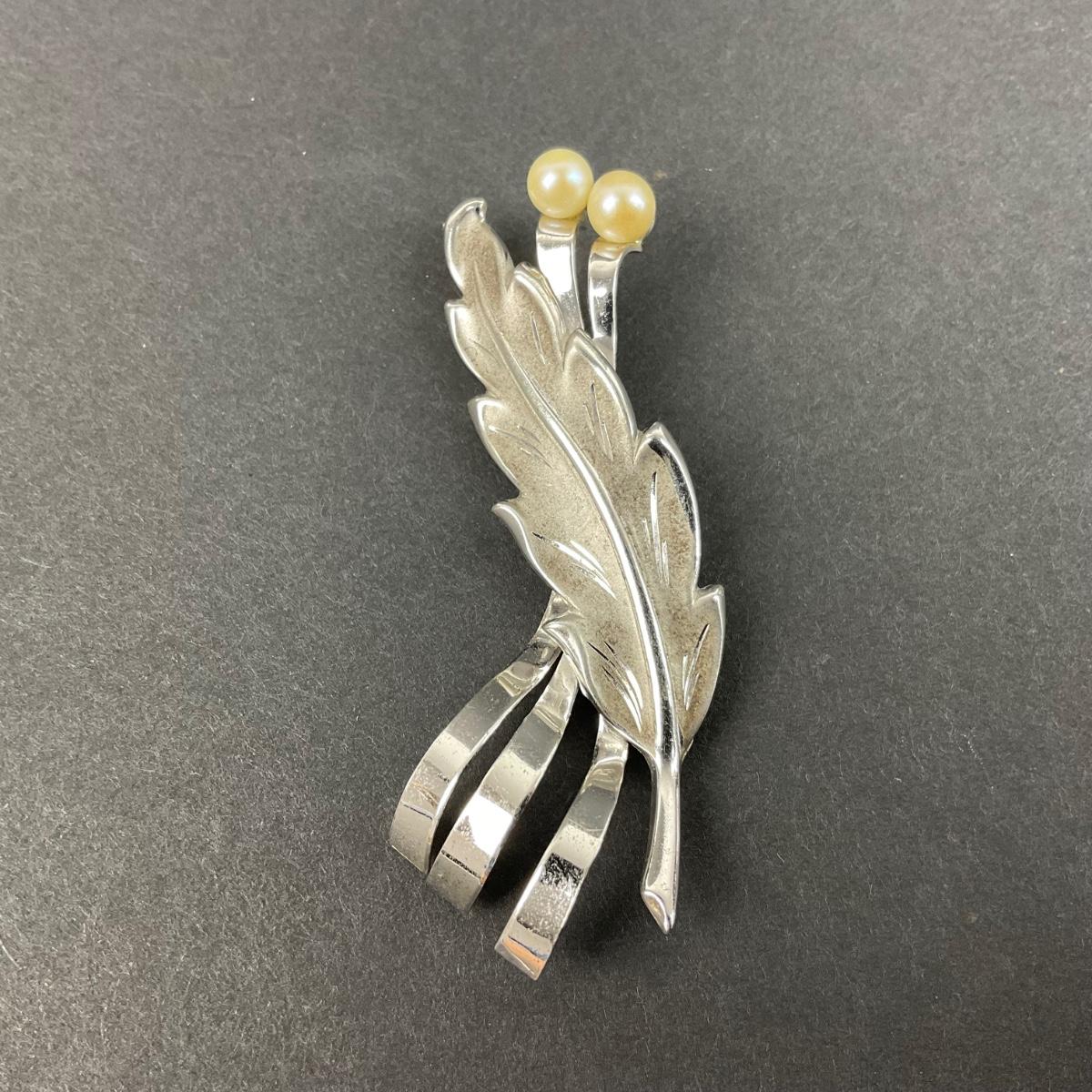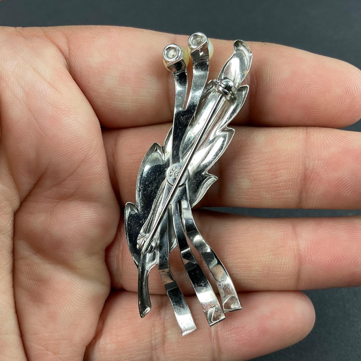 -42- SILVER | Curtis Creations Sterling & Pearl Modernist Brooch | Brooch