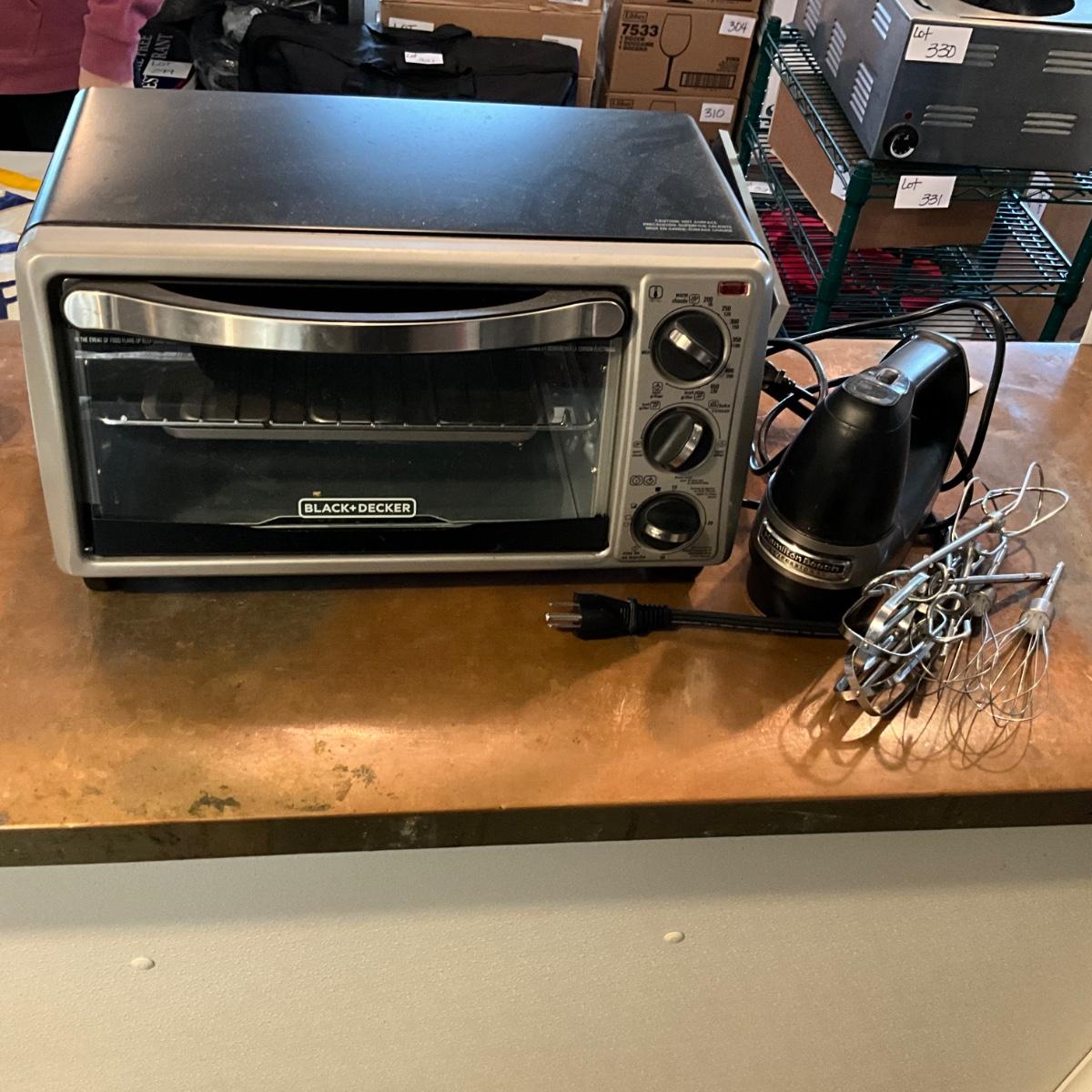 Like new toaster oven , and handmixer is tested and in working condition with attachments