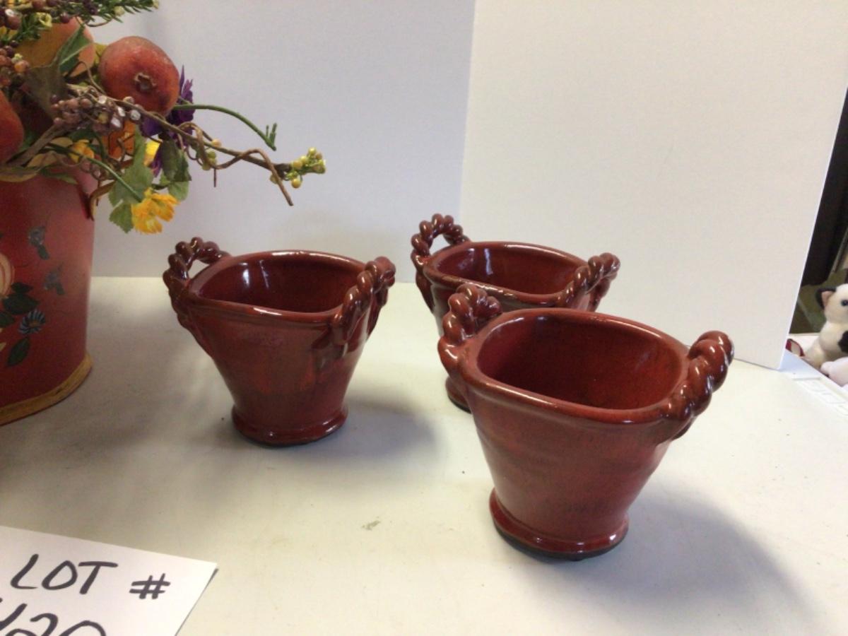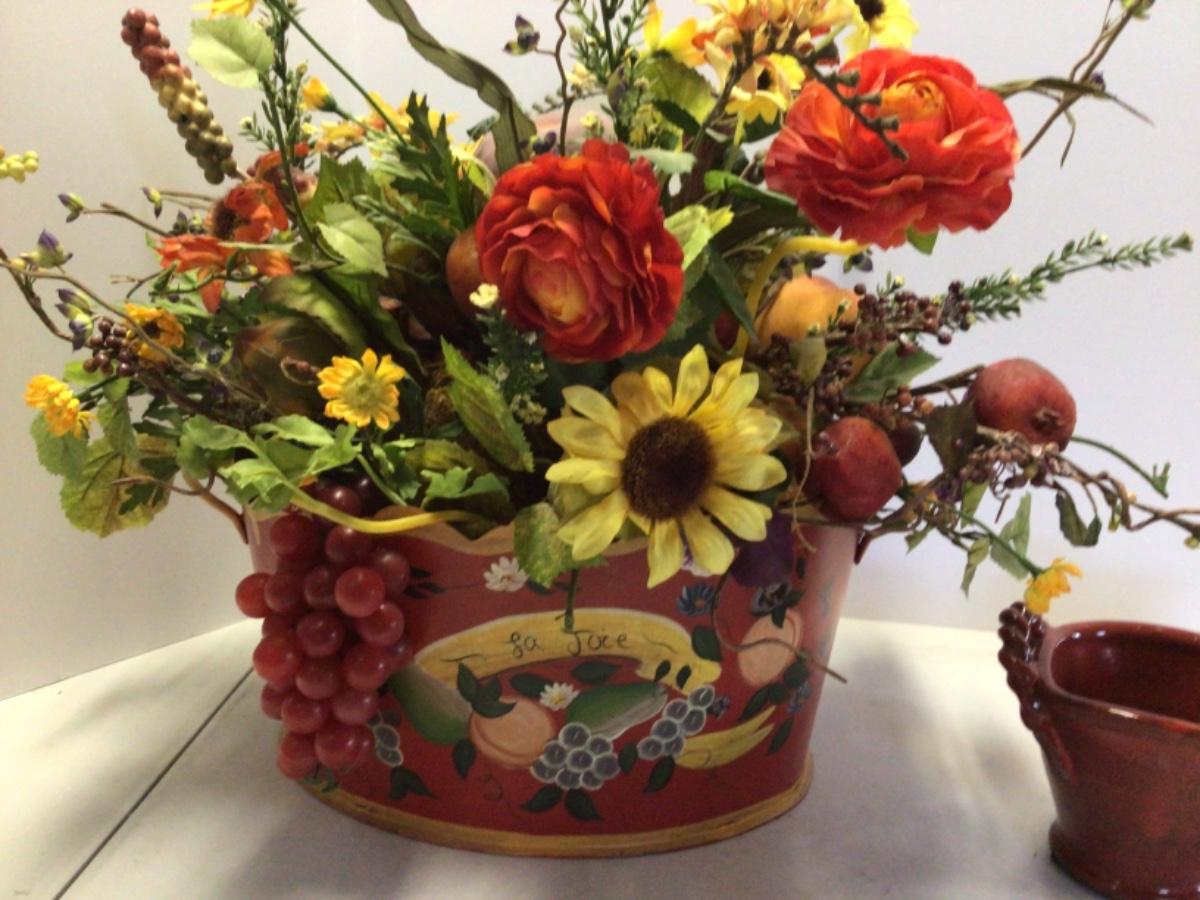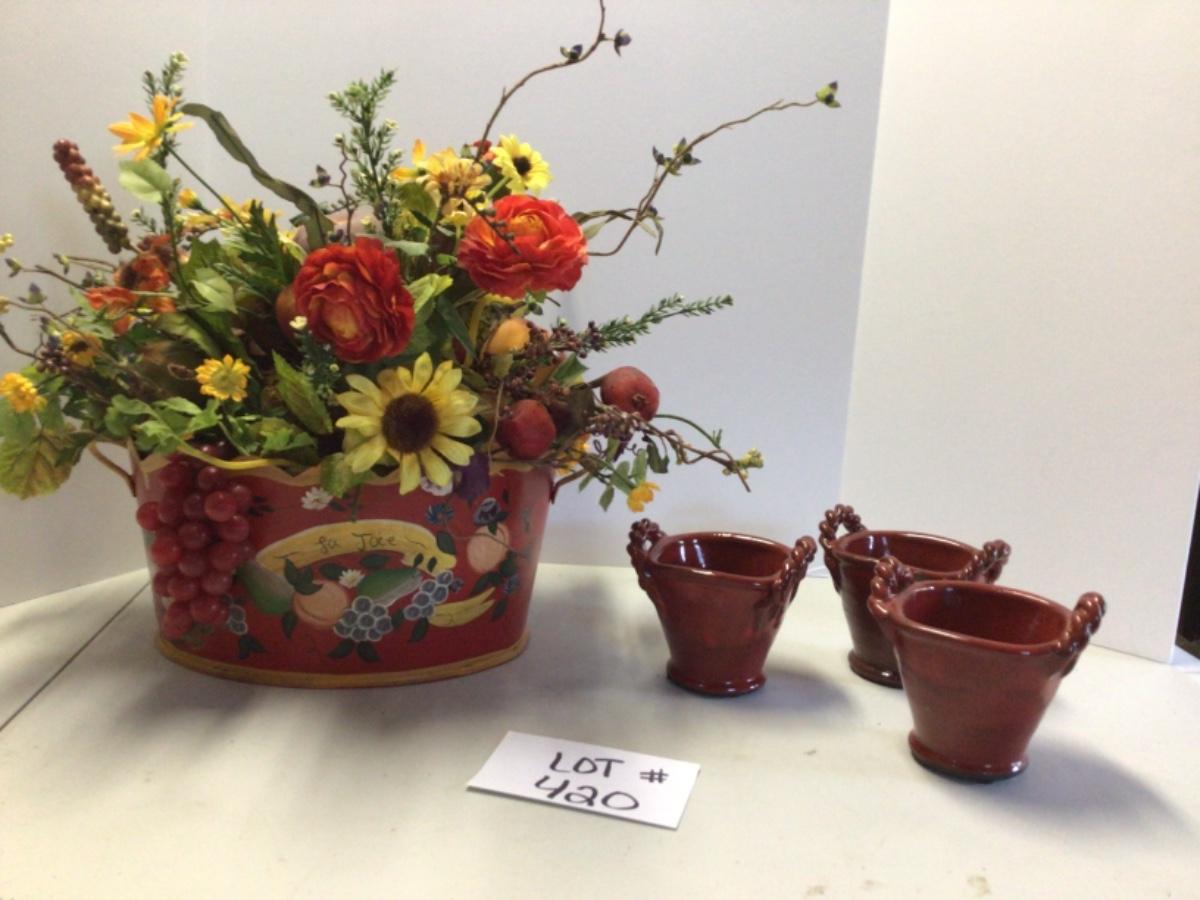 420 Oval Tin with Artificial Flowers and Terra Cotta Bowls