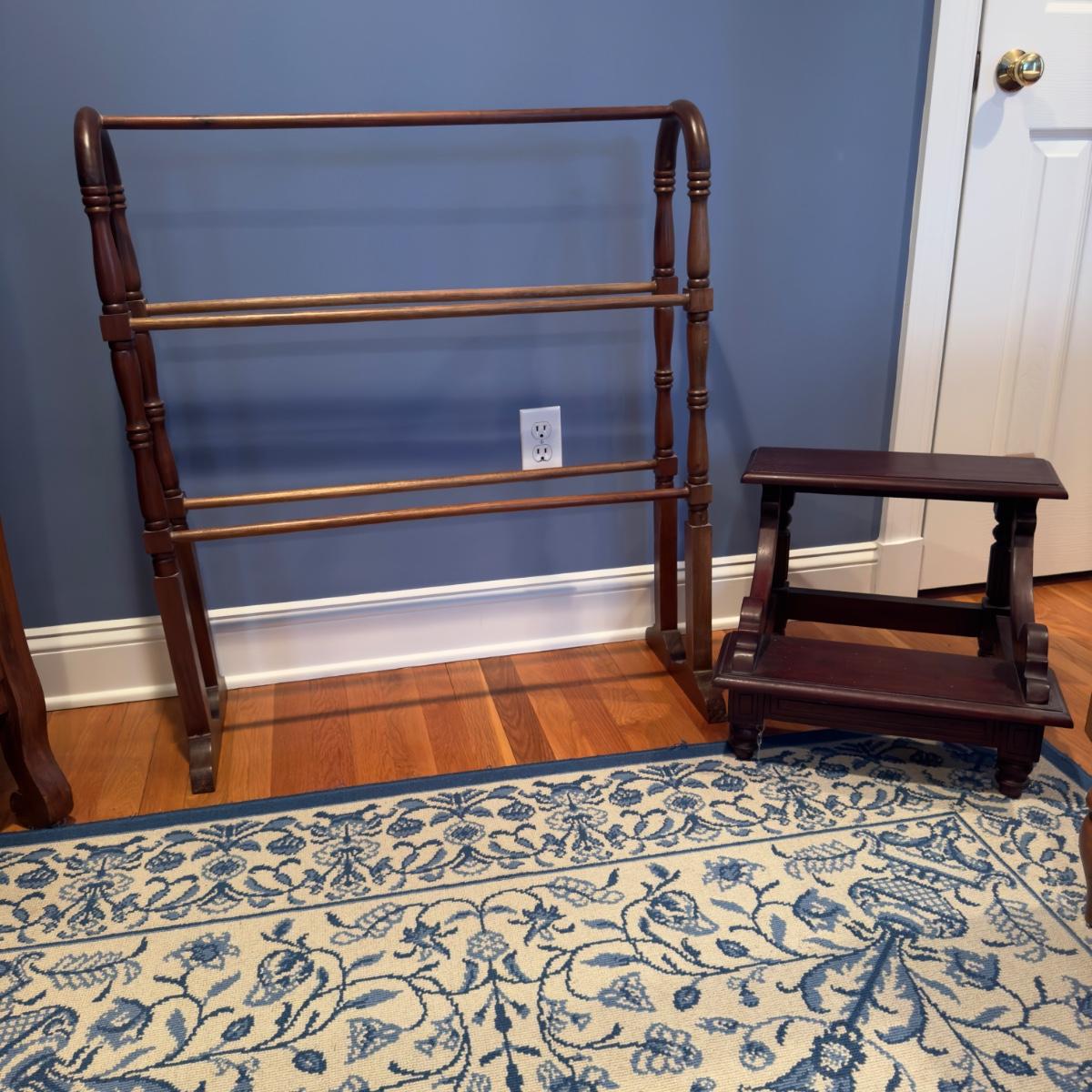 420 Vintage Mahogany Quilt Rack and Foot Stool