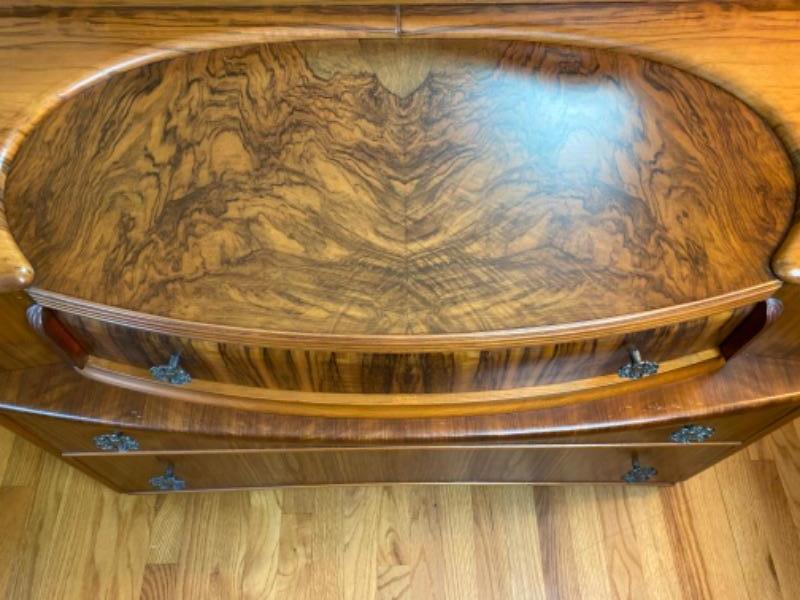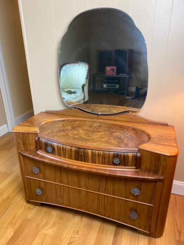 Art Deco vanity with mirror measuring 45” wide x 22” deep x 58” tall with mirror