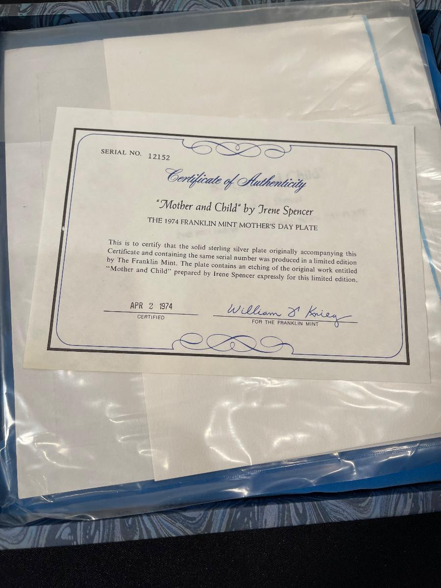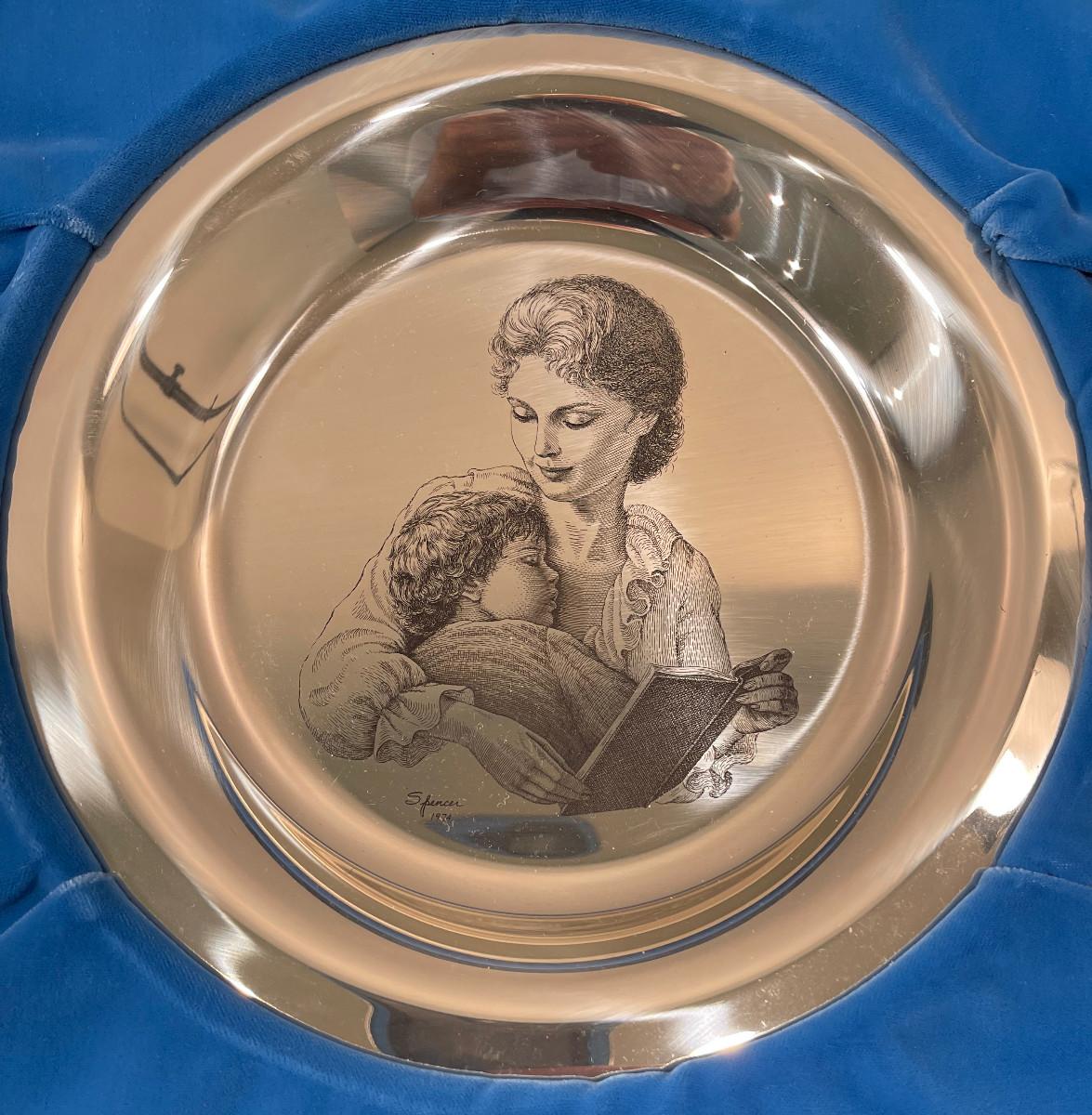 #421 Mothers Day 1974 Mother and Child Sterling Silver Plate