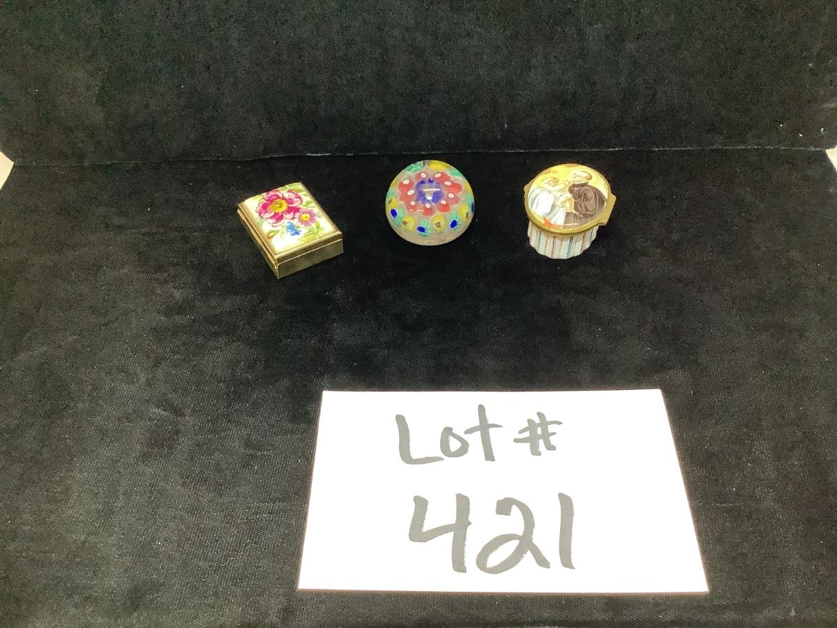 421  Pair of Vintage Pill Boxes & One Glass Paperweight