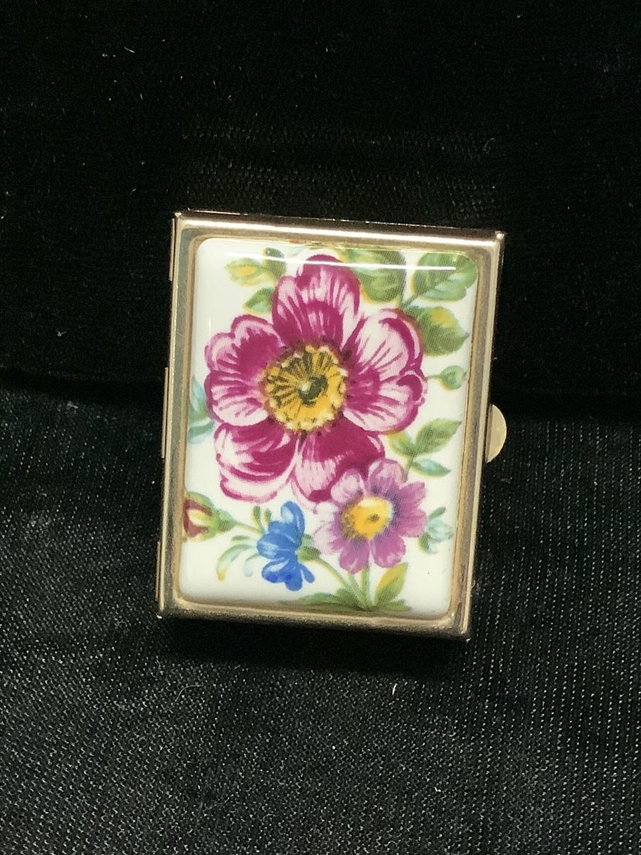 1 ) Vintage Italian Pill Box, Porcelain Floral Lid, Pink Flowers