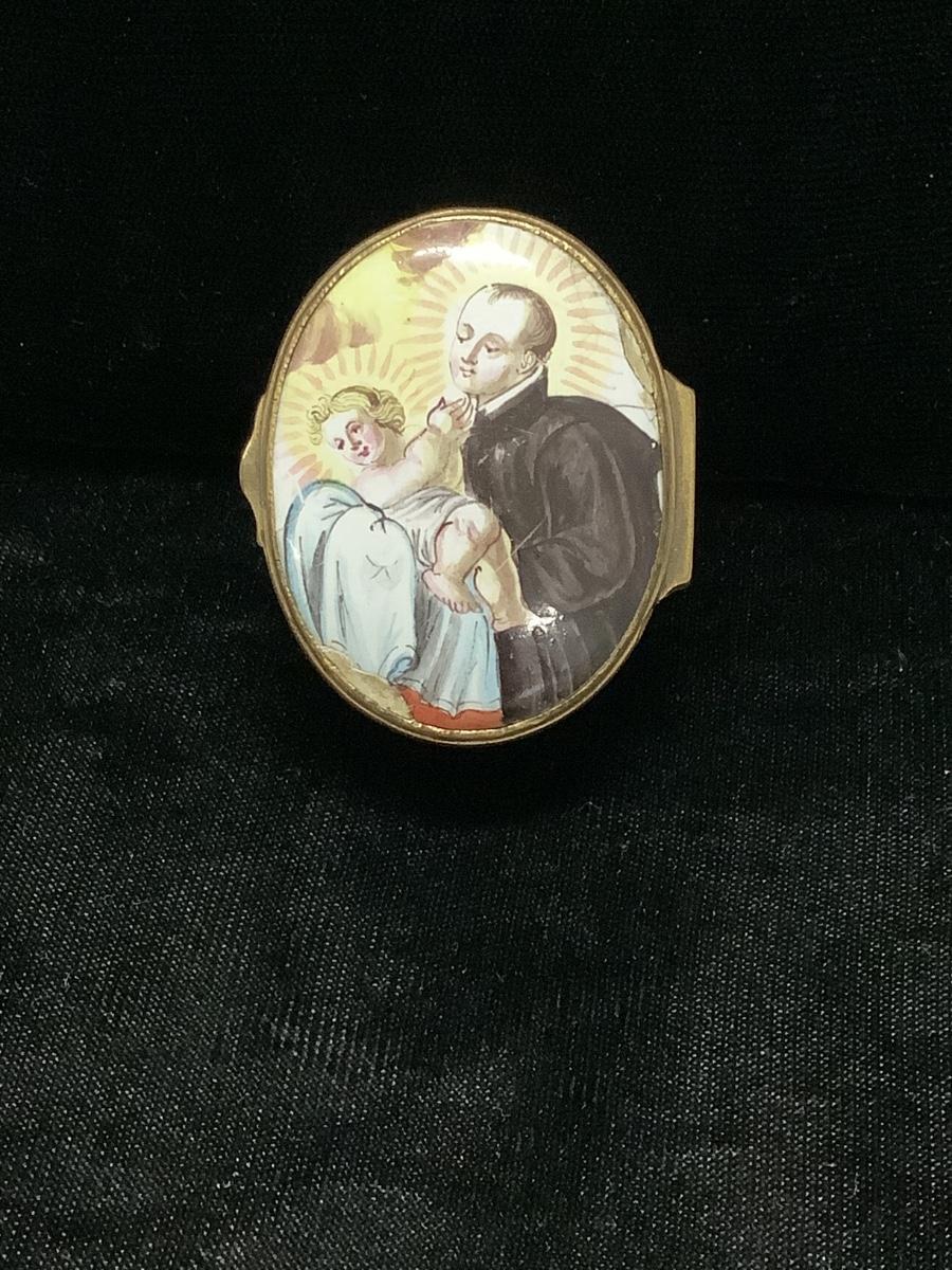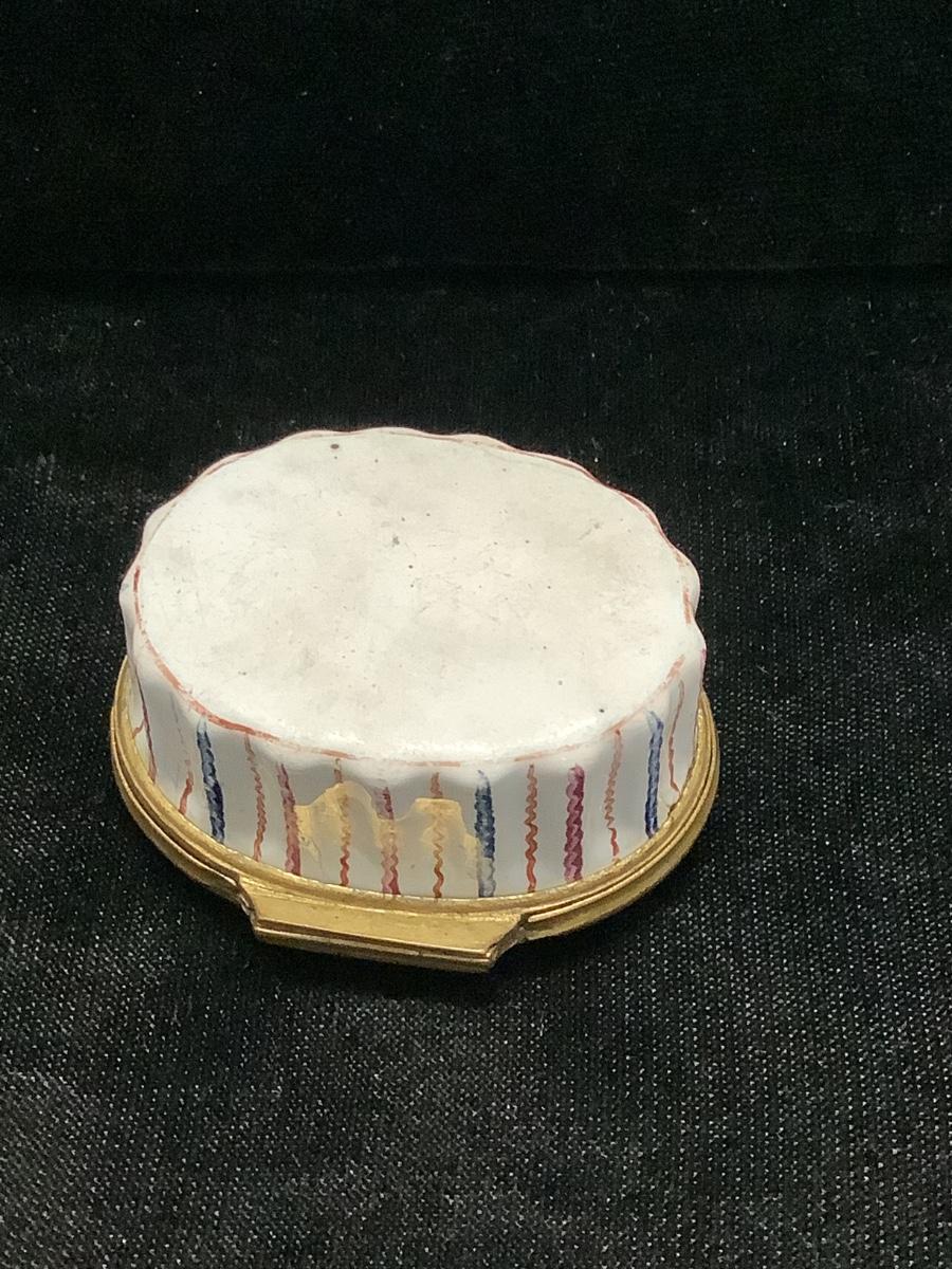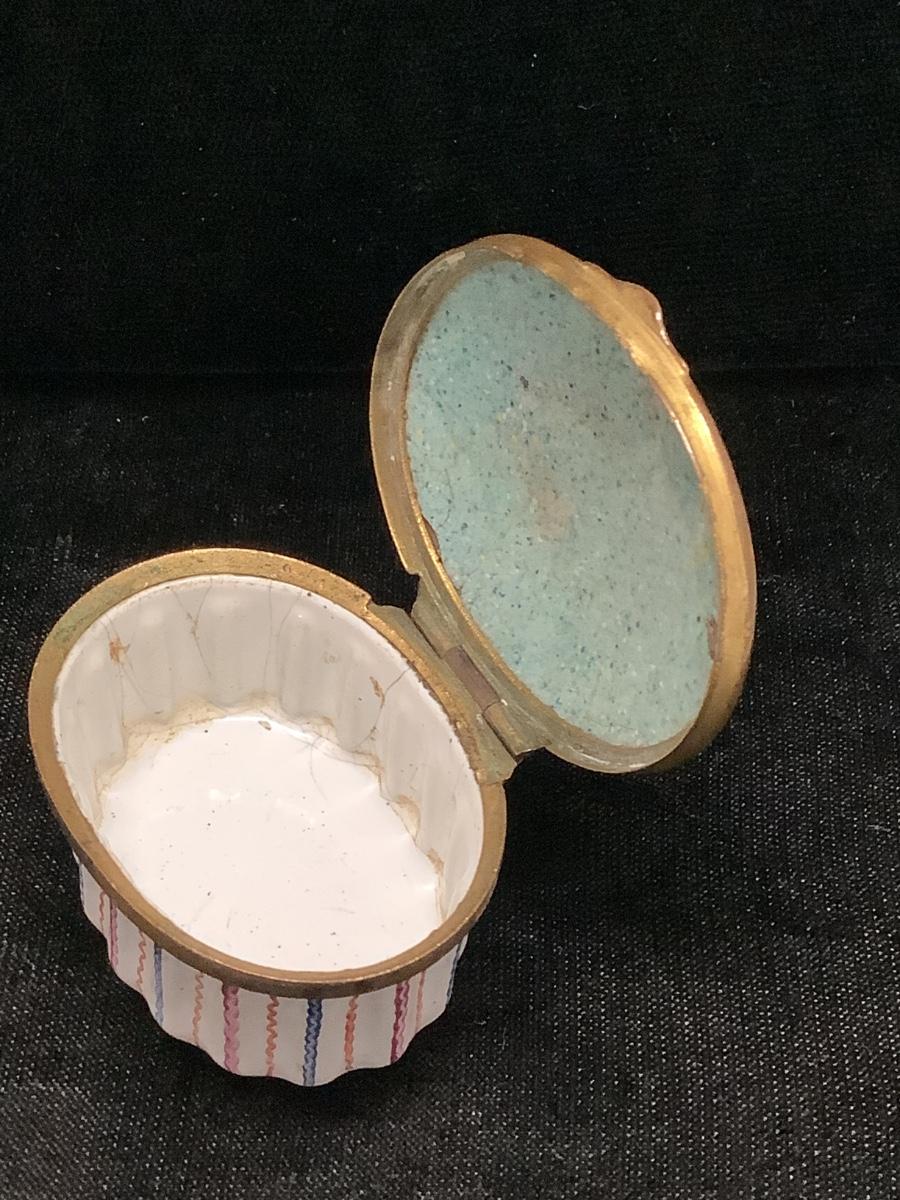 1 ) Enamel over Brass, Hinged Oval Pill Box