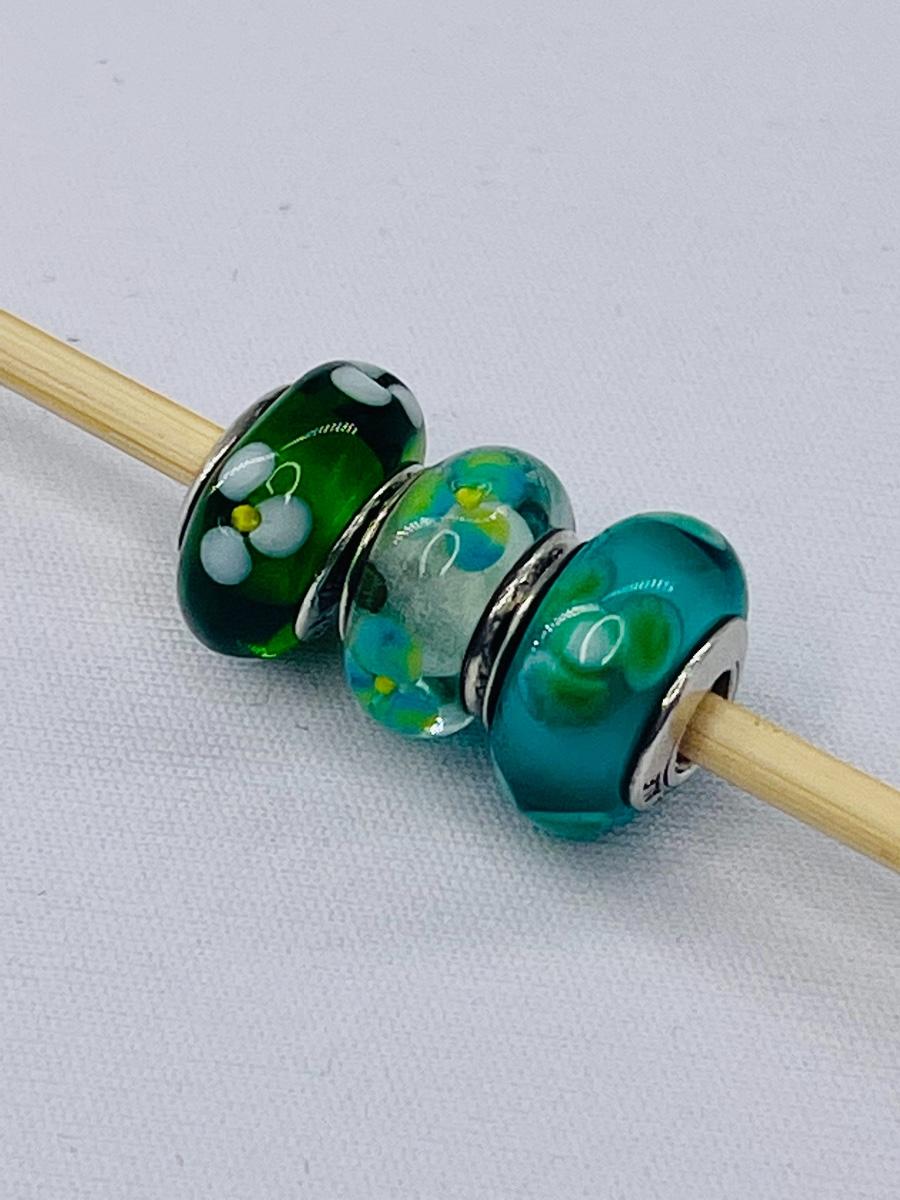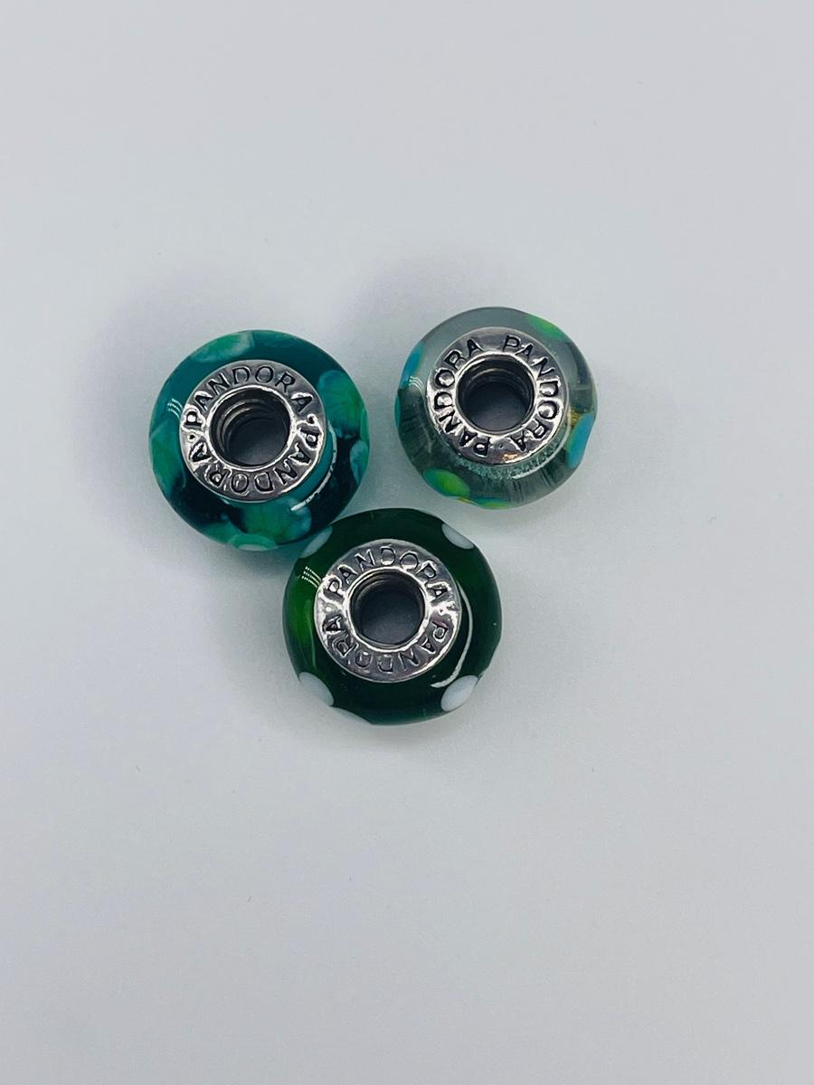 #422 - 3 Pandora “Green” Glass Murano Beads