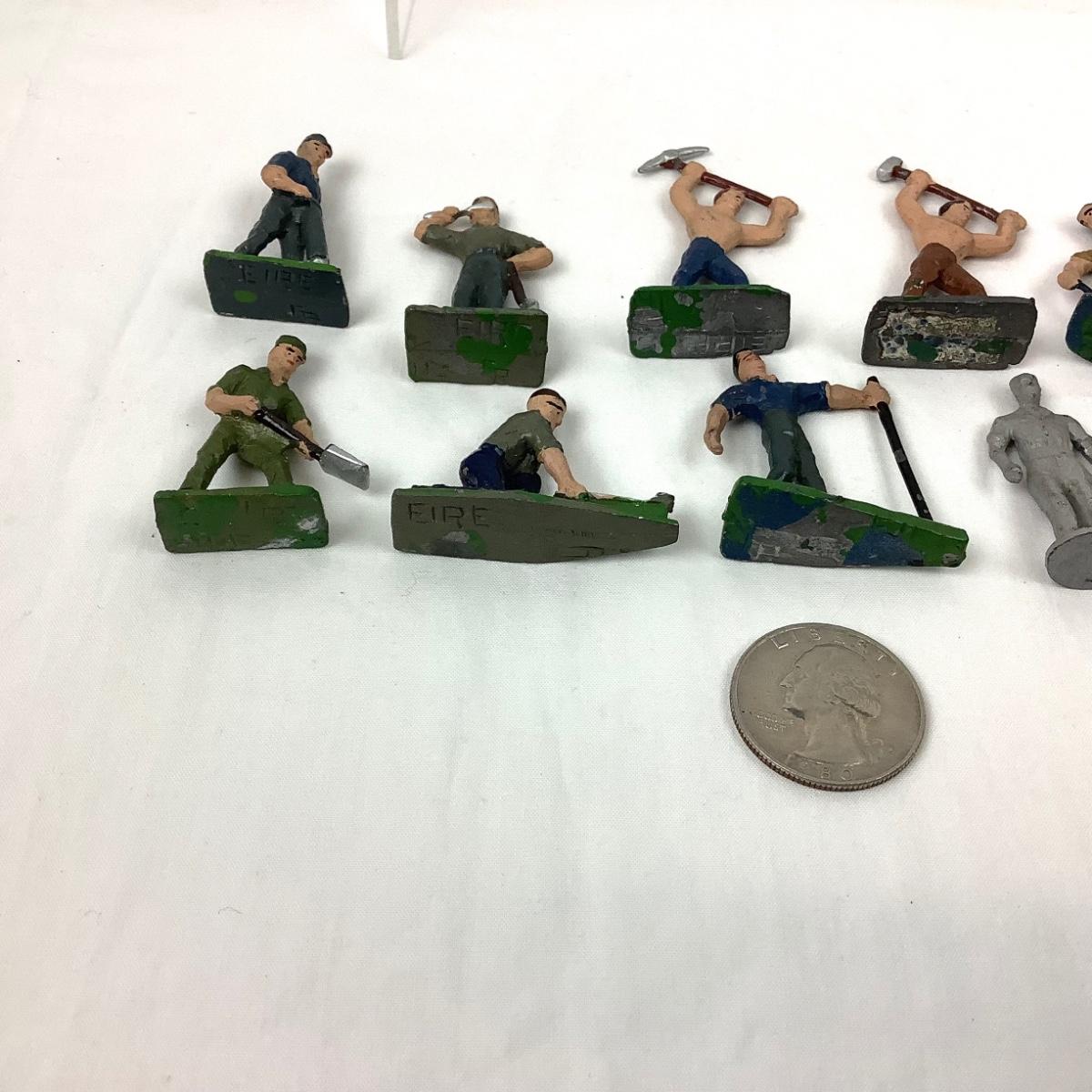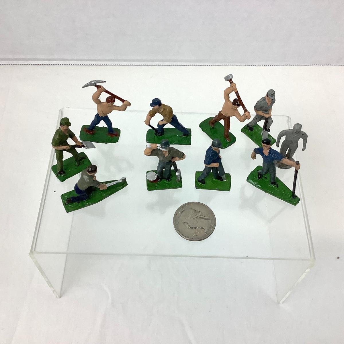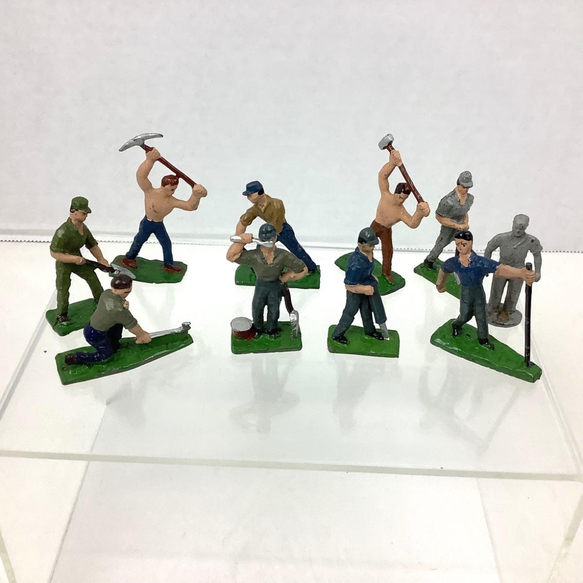 There are 9 assorted figures in the lot, all are die cast metal, suitable for Marx/Lionel train layouts.