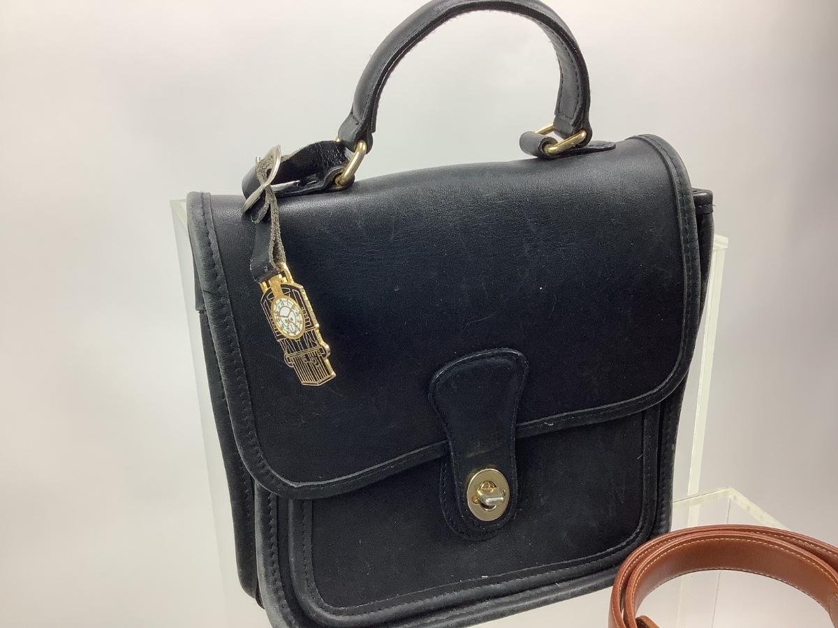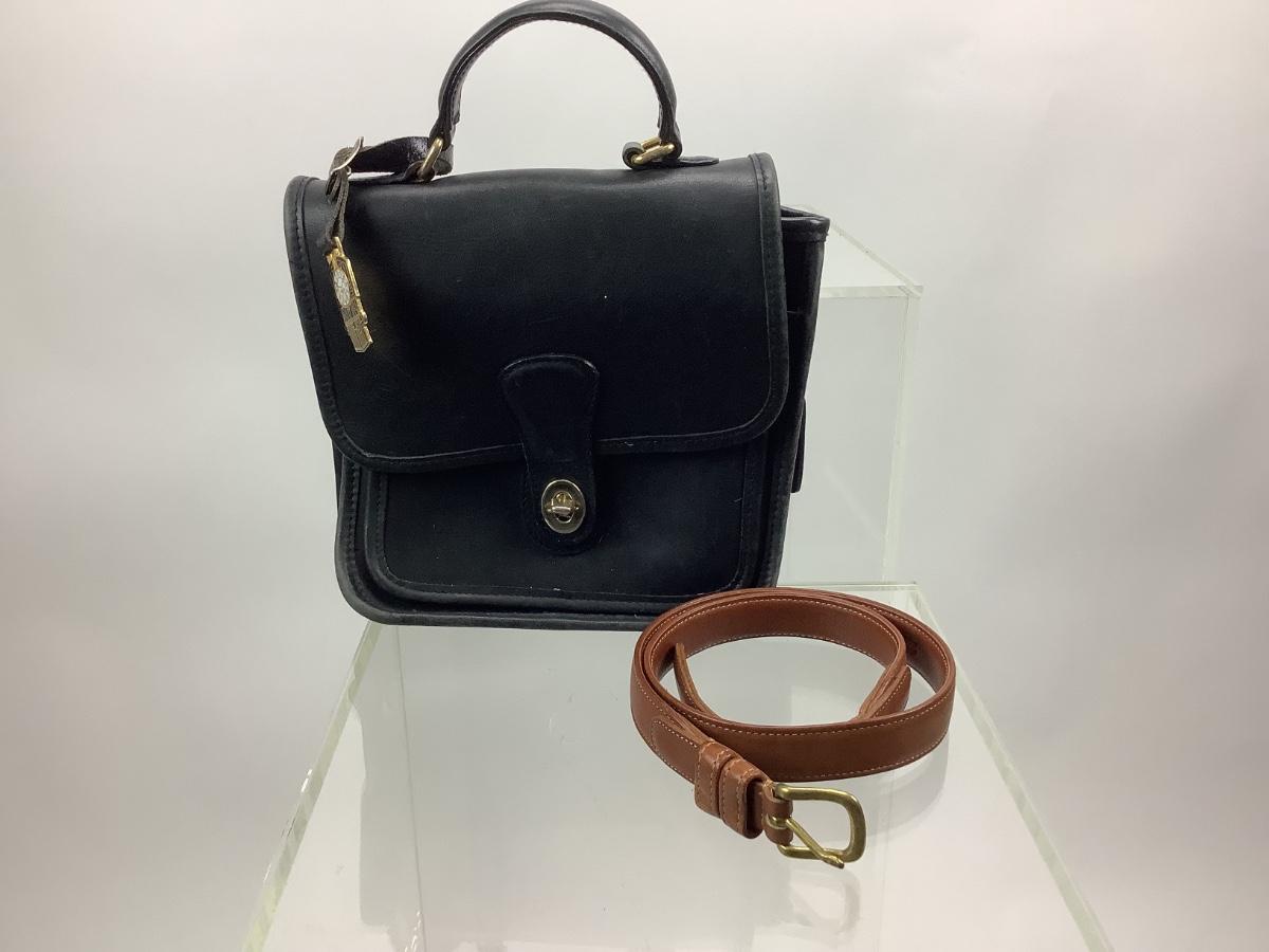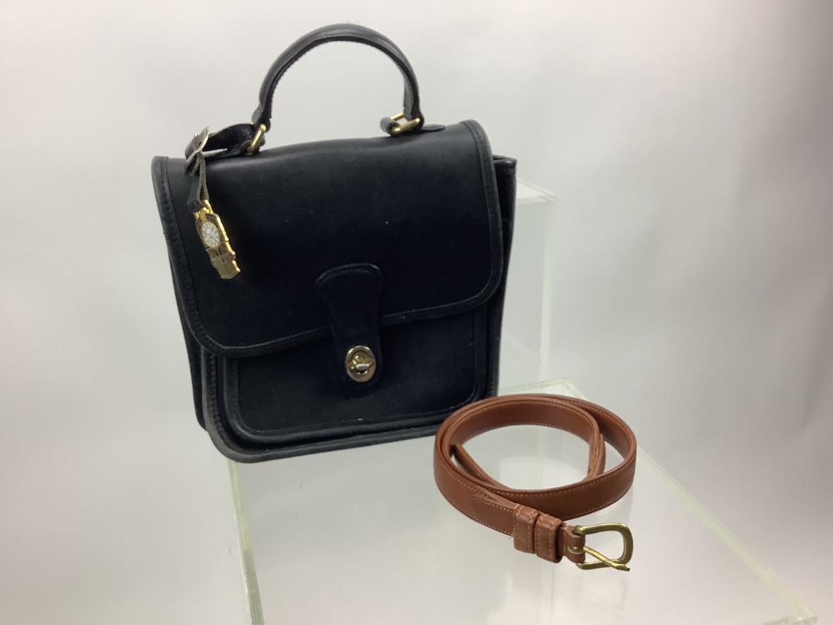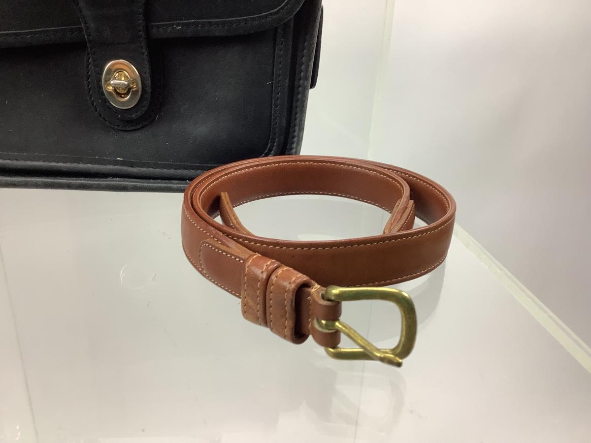 The Coach purse is 9" x 8" with wear on the edges, there is not strap present, the belt is Coach and leather size 30.
