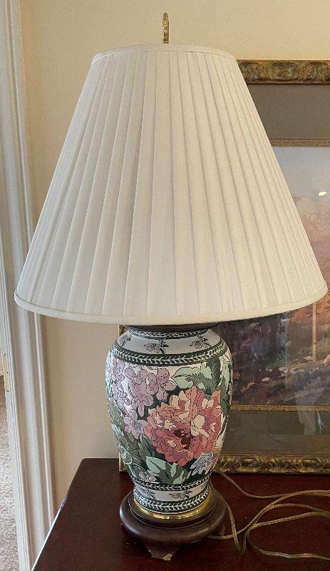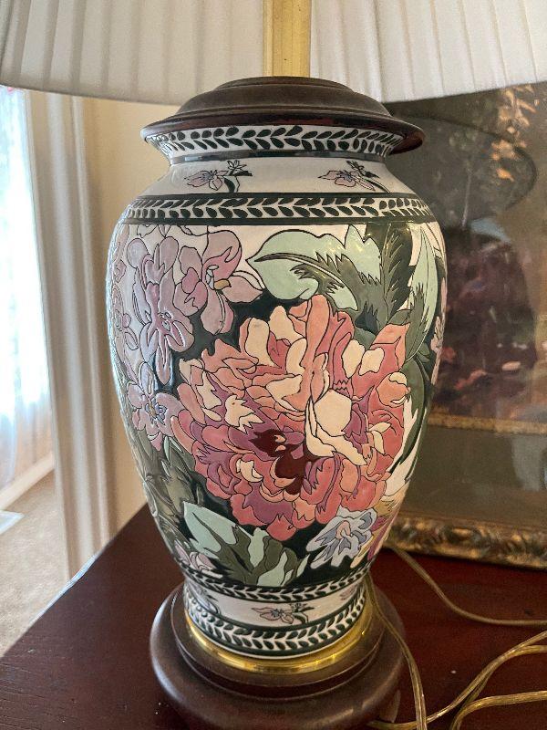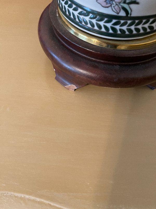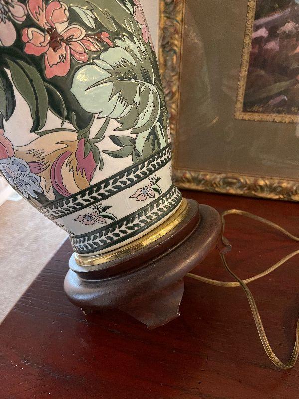 #425 Ceramic Lamp Floral has a small chip on Base