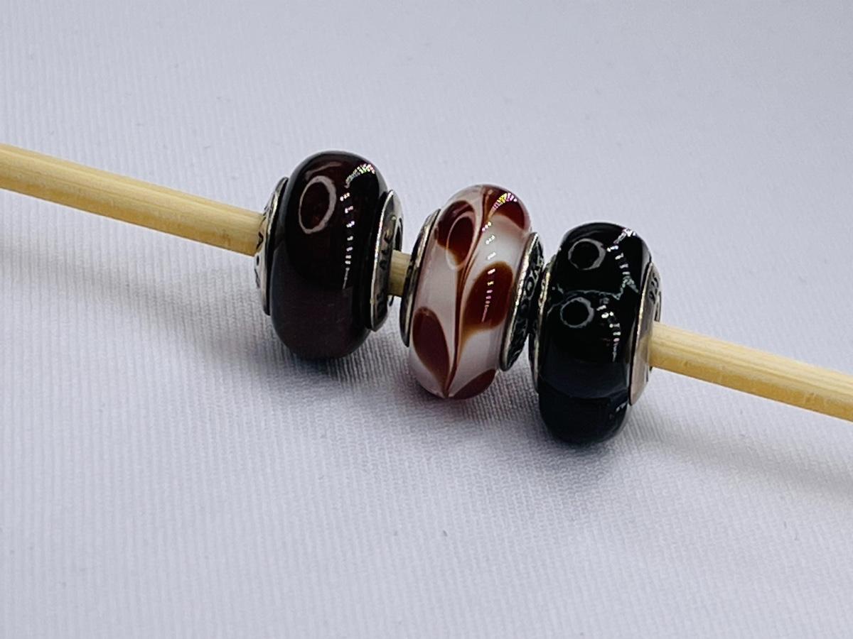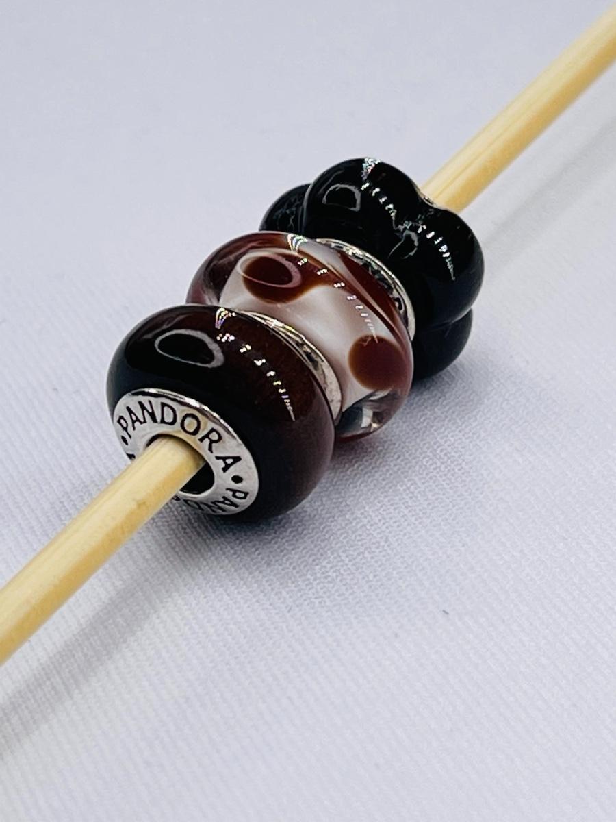 #426 - 3 Pandora “Brown” Glass Murano Beads