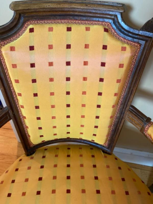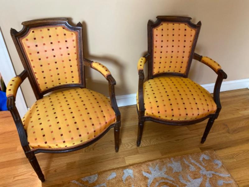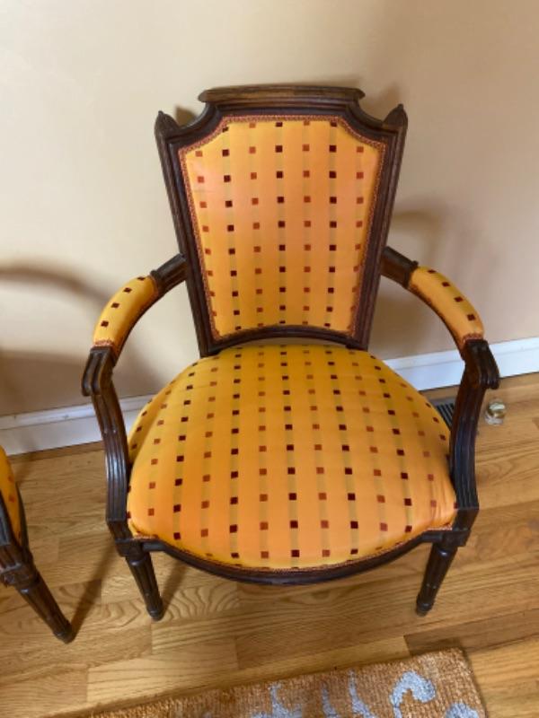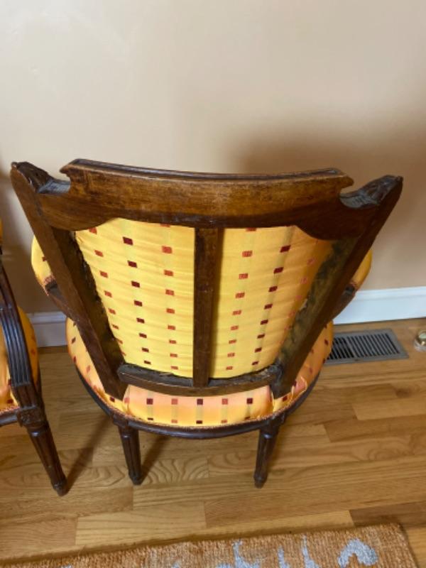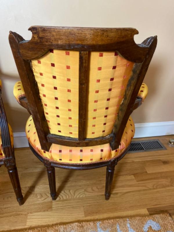 Pair of Antique French Silk Upholstered Arm Chairs