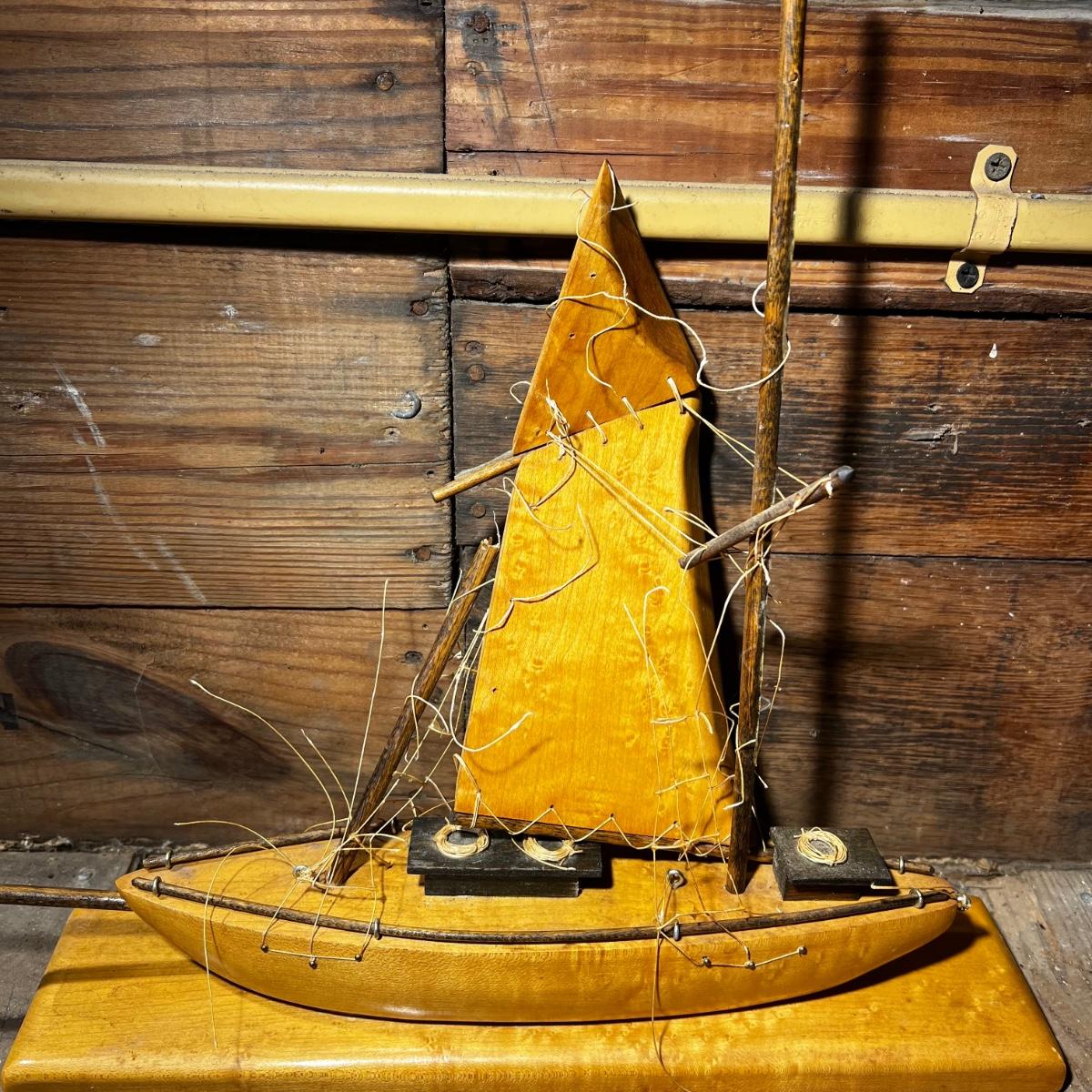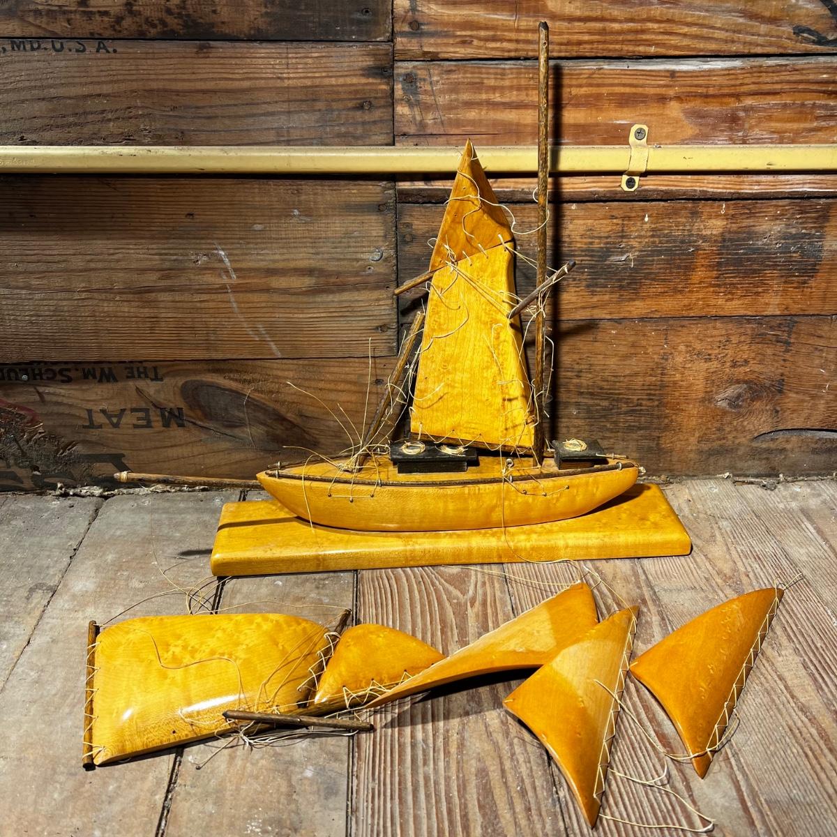 N427 Small Vintage All Wood Sailboat Model AS IS
