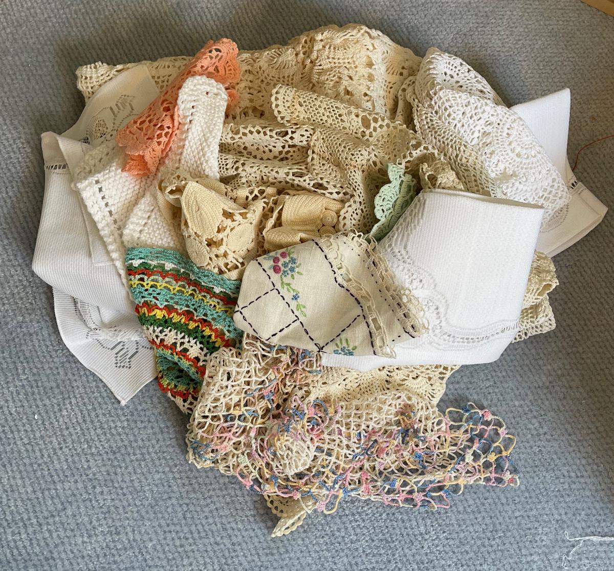 #427U Crocheted Dollies and Table Cloth