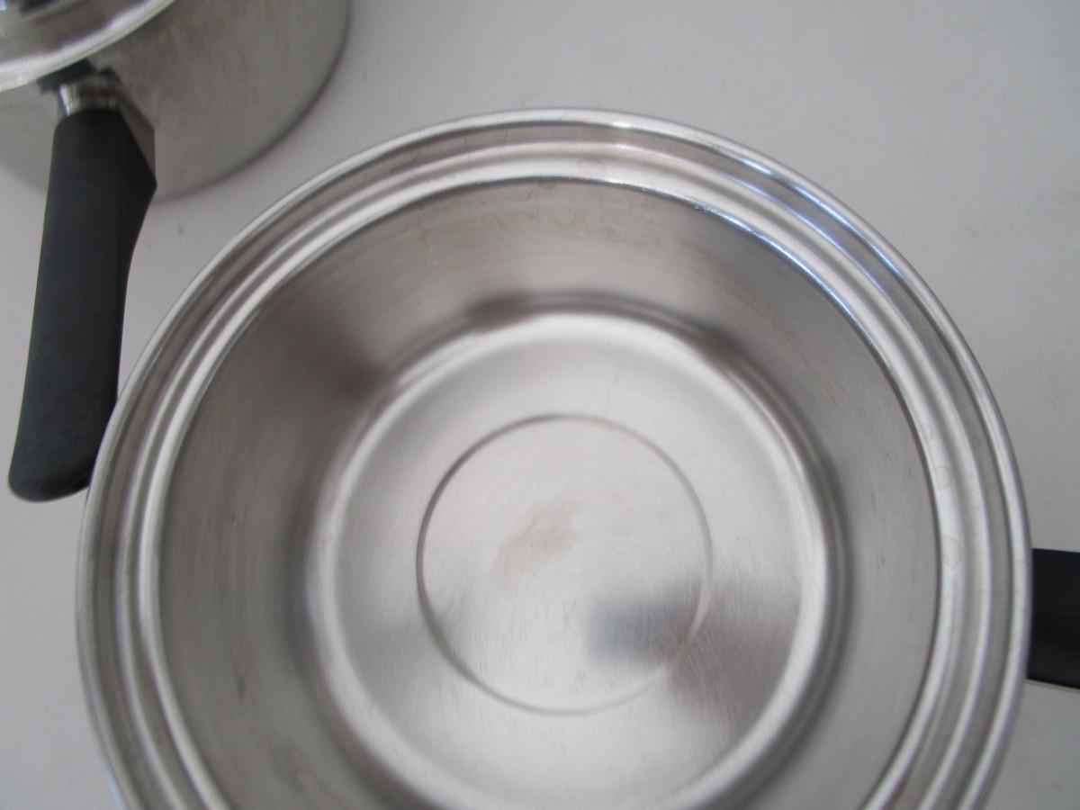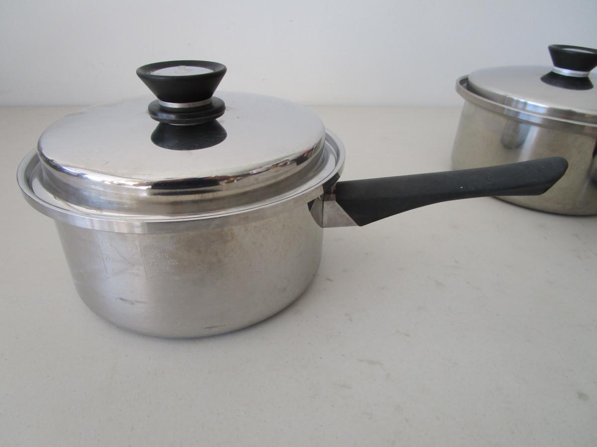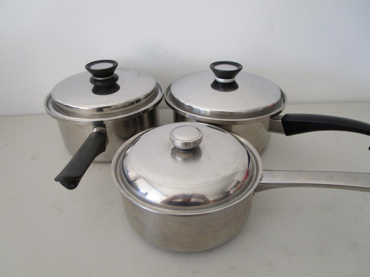 (2) 7.5" around x 3.5" deep, (1) 7" around x 3" deep