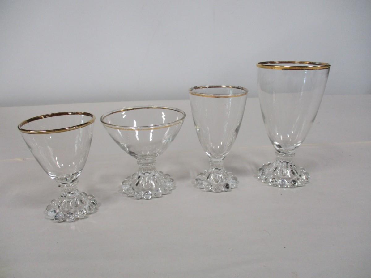 43 - Anchor Hocking Berwick Boopie Gold Rim Footed Glasses