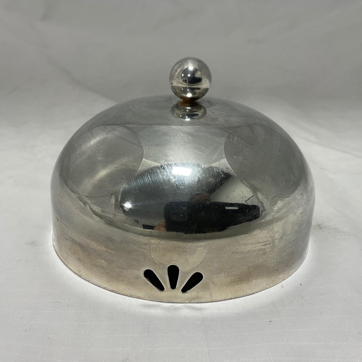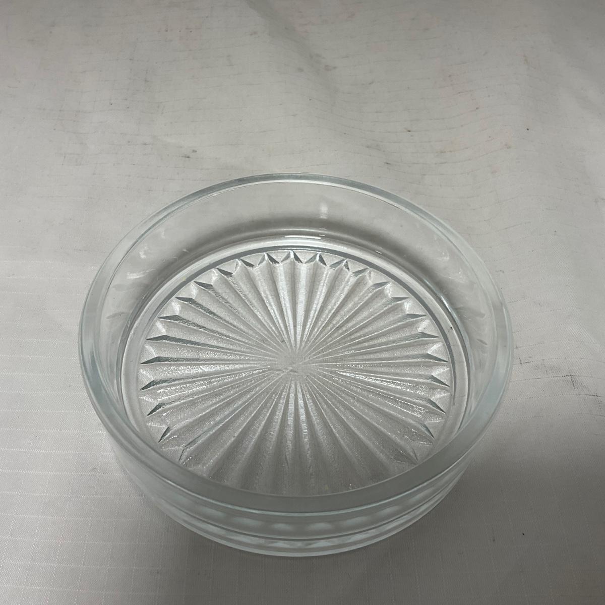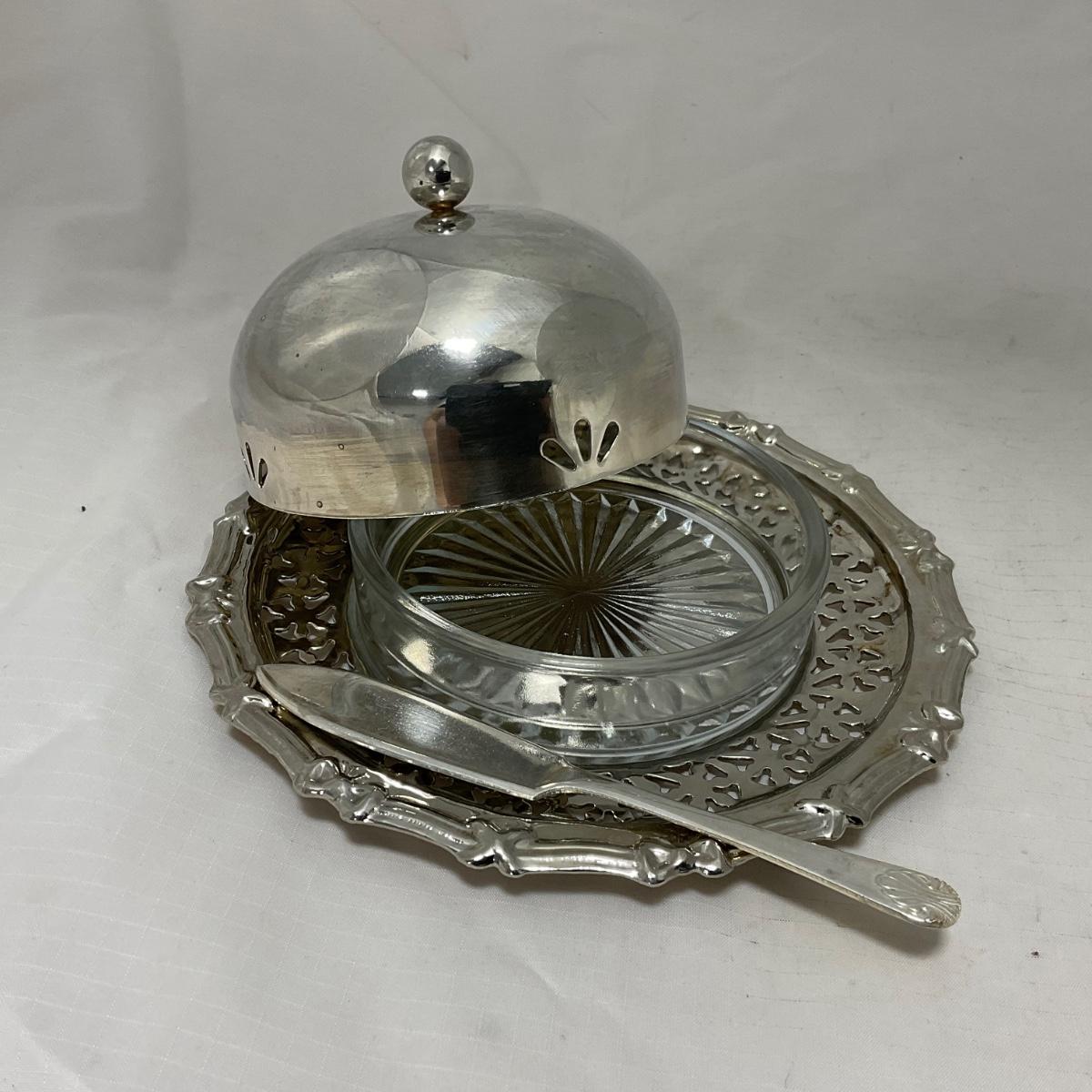-43- Clear Glass & Metal | Covered Butter Dish | Serving Knife