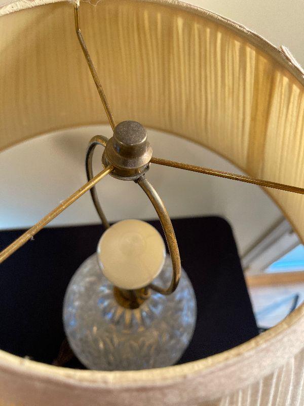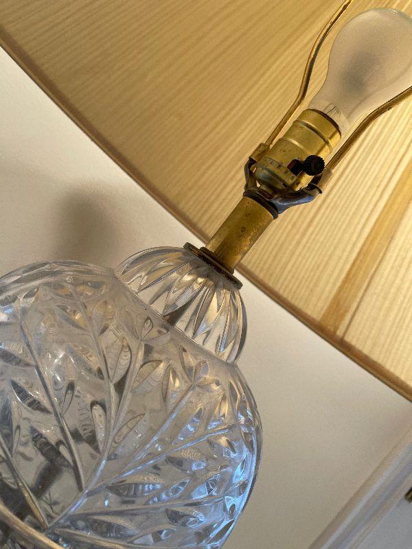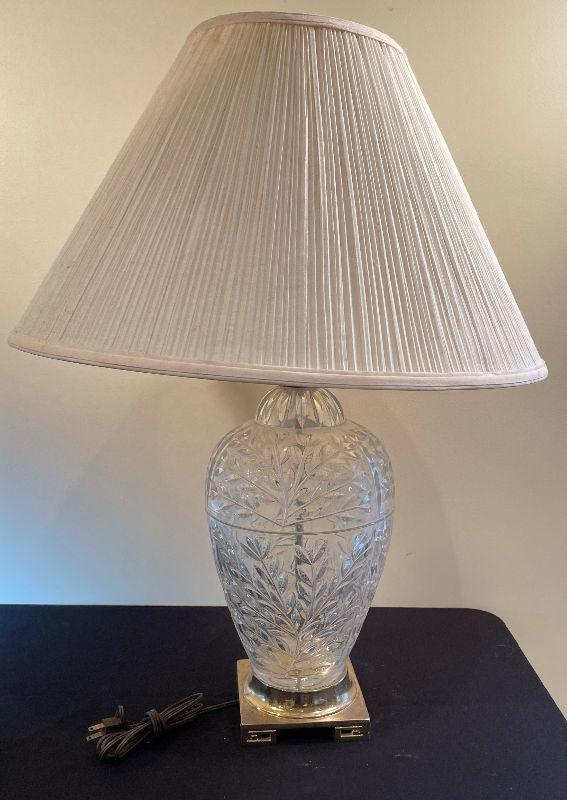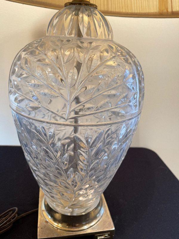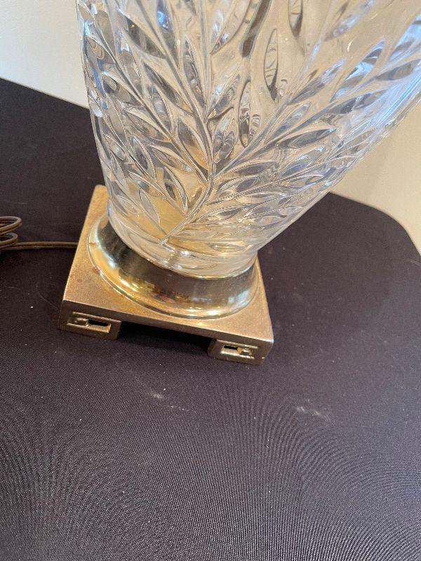 #43 Crystal Lamp with Asian flair on brass, leaf design on glass.