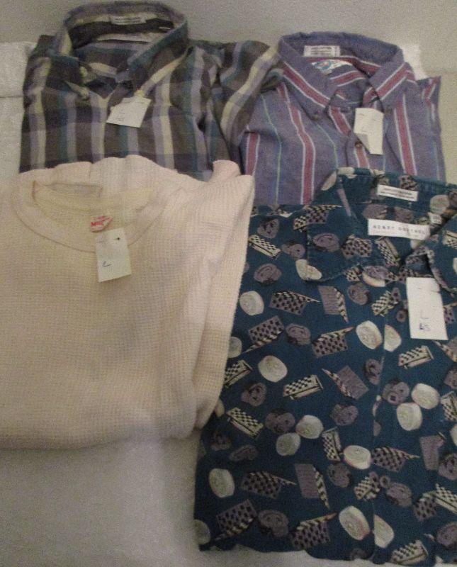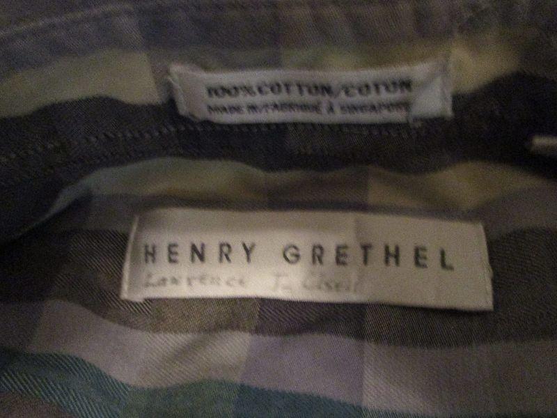 Macdee thermal t-shirt long sleeve natural color; World Island striped long sleeve; Henry Grethel plaid print long sleeve; Henry Grethel teal with checker boards long sleeves
