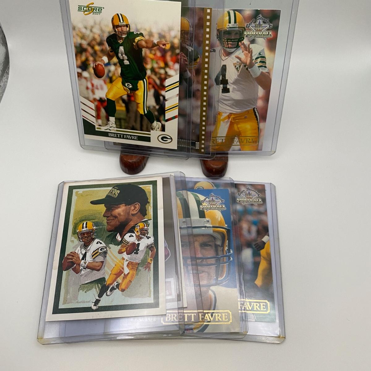 Seven Vintage Packers Brett Favre cards. Please see photos for details and condition. ::: Shipping is available on this lot. If you require shipping you must let us know at the close of the auction. We will coordinate with you after the item has been won. Shipping fees will include insurance up to or exceeding the value of all items being mailed. If you have any questions regarding this lot please contact the auctioneer either via this website, by direct email or by phone. PICK UP TIMES and other important information can be found in the TERMS and DESCRIPTION of the auction. Please take a look for pertinent information. Thanks!
