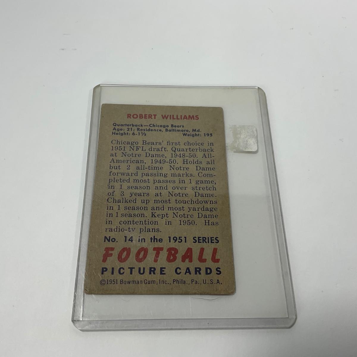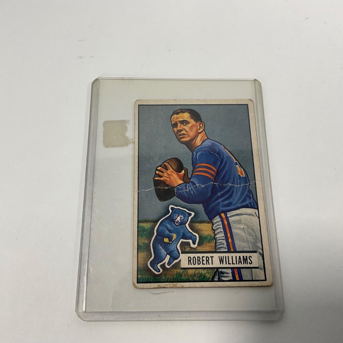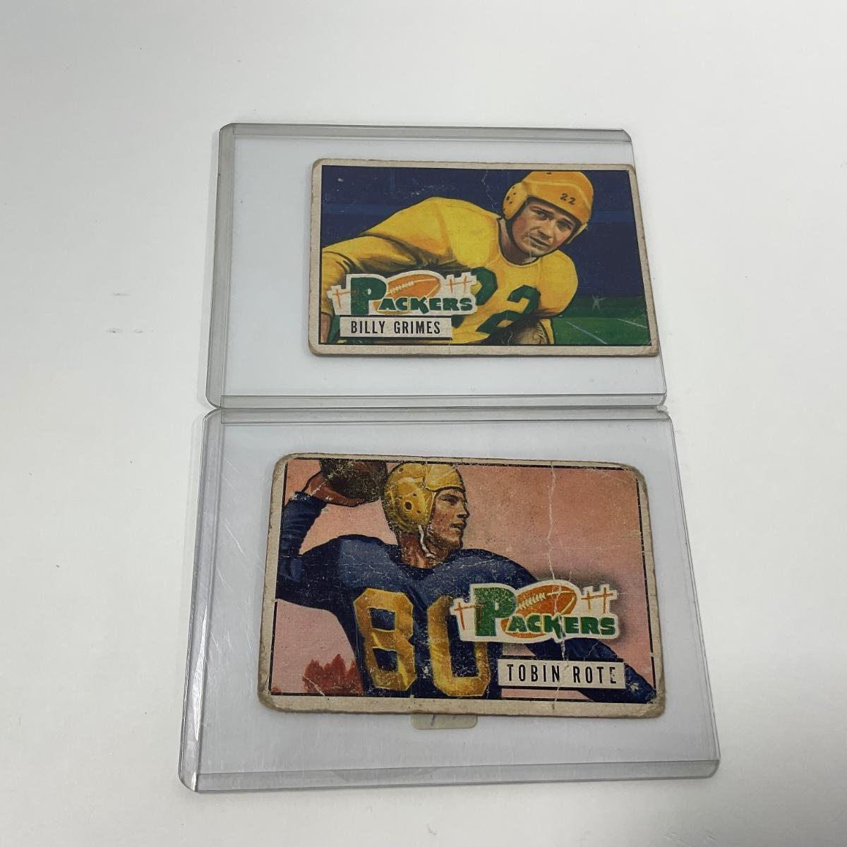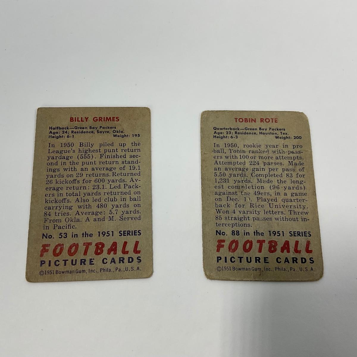 Seven vintage 1951 Bowman football cards in plastic sleeves. Please see photos for details and condition. ::: Shipping is available on this lot. If you require shipping you must let us know at the close of the auction. We will coordinate with you after the item has been won. Shipping fees will include insurance up to or exceeding the value of all items being mailed. If you have any questions regarding this lot please contact the auctioneer either via this website, by direct email or by phone. PICK UP TIMES and other important information can be found in the TERMS and DESCRIPTION of the auction. Please take a look for pertinent information. Thanks!