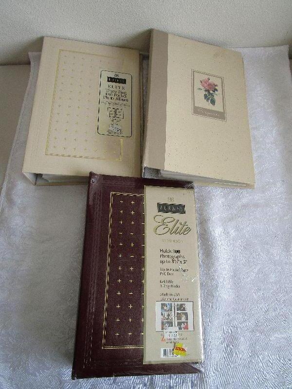 New Burnes Elite Burgundy Photo Album by Holson, New with wrapper, 8"x12"; New Burnes Ivory Elite Photo Album by Holson, New with wrapper, 8"x13"; Used Holson Ivory Photo Album 8"x13"